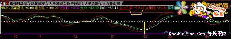 Var1:=3*SMA((CLOSE-LLV(LOW,75))/(HHV(HIGH,75)-LLV(LOW,75))*100,20,1)-2*SMA(SMA((CLOSE-LLV(LOW,75))/(HHV(HIGH,75)-LLV(LOW,75))*100,20,1),15,1); Var2:=(CLOSE-LLV(LOW,26))/(HHV(HIGH,26)-LLV(LOW,26))*100; Var3:=SMA(SMA(Var2,3,1),3,1); Var4:=EMA(Var3,5); Var5:=LLV(LOW,26); Var6:=HHV(HIGH,34); Var7:=EMA((CLOSE-Var5)/(Var6-Var5)*4,4)*25; Var8:=100-Var1; Var9:=(CLOSE-LLV(LOW,9))/(HHV(HIGH,9)-LLV(LOW,9))*100; Var10:=SMA(Var9,3,1); Var11:=SMA(Var10,3,1); Var12:=EMA(3*Var10-2*Var11,3); Var13:=(-1)*(EMA(Var8,1)-50)+50; Var14:=EMA(100*(HHV(HIGH,14)-CLOSE)/(HHV(HIGH,14)-LLV(LOW,14)),6); 底部雷达:IF(CROSS(Var4,10) AND Var4>10,50,0),STICK,coloryellow,LINETHICK3;0,STICK,color000000,LINETHICK3; 建仓区: IF((Var7<10),80,100), linethick2, color00ccff; 派发区: IF((Var7>90),10,0), linethick2 ,colorf00ff0; 大户:SMA((C-LLV(L,27))/(HHV(H,27)-LLV(L,27))*100,9,1),color00ff00; 散户:SMA(大户,3,1), colorwhite; 主力庄家:3*大户-2*散户, colorred; 头部线:89.307; 底部线:6.788,COLORFFFF00; 强弱线:49, colorwhite,POINTDOT,linethick2;