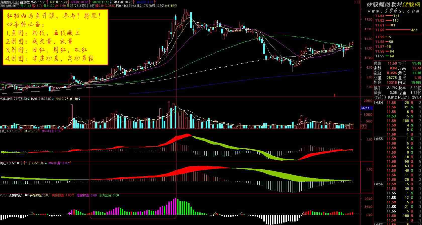 五个指标窗口的组合策略是:只作主升浪。