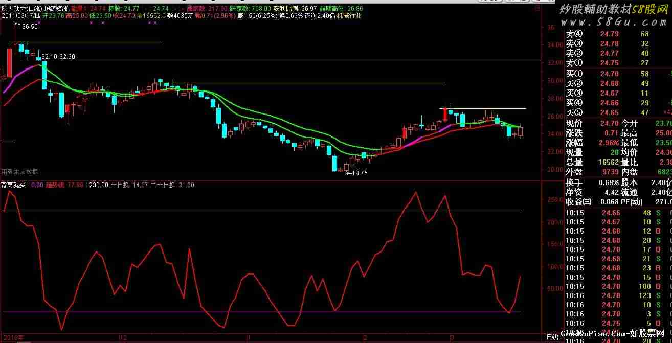 LC:=REF(C,1); RSI5:=((SMA(MAX((C-LC),0),5,1)/SMA(ABS((C-LC)),5,1))*100); TR1:=SUM(MAX(MAX((H-L),ABS((H-REF(C,1)))),ABS((L-REF(C,1)))),10); HD:=(H-REF(H,1)); LD:=(REF(L,1)-L); DMP:=SUM(IF(((HD>0) AND (HD>LD)),HD,0),10); DMM:=SUM(IF(((LD>0) AND (LD>HD)),LD,0),10); PDI:=((DMP*100)/TR1); MDI:=((DMM*100)/TR1); ADX:=MA(((ABS((MDI-PDI))/(MDI+PDI))*100),5); AV:=(RSI5+ADX); DXR:=(((ADX+REF(ADX,5))/2)+RSI5); 0,COLORFF00FF; WR10:=((100*(HHV(H,10)-C))/(HHV(H,10)-LLV(L,10))); NEWVOL:=(RSI5-WR10); 阶段底:=(AV+NEWVOL); 趋势线:LLV(阶段底,1),COLORRED,LINETHICK2; 230,COLORFFFFFF; 十日换:SUM(VOL,10)/CAPITAL*100,COLOR999999,NODRAW; 二十日换:SUM(VOL,20)/CAPITAL*100,COLOR999999,NODRAW; |