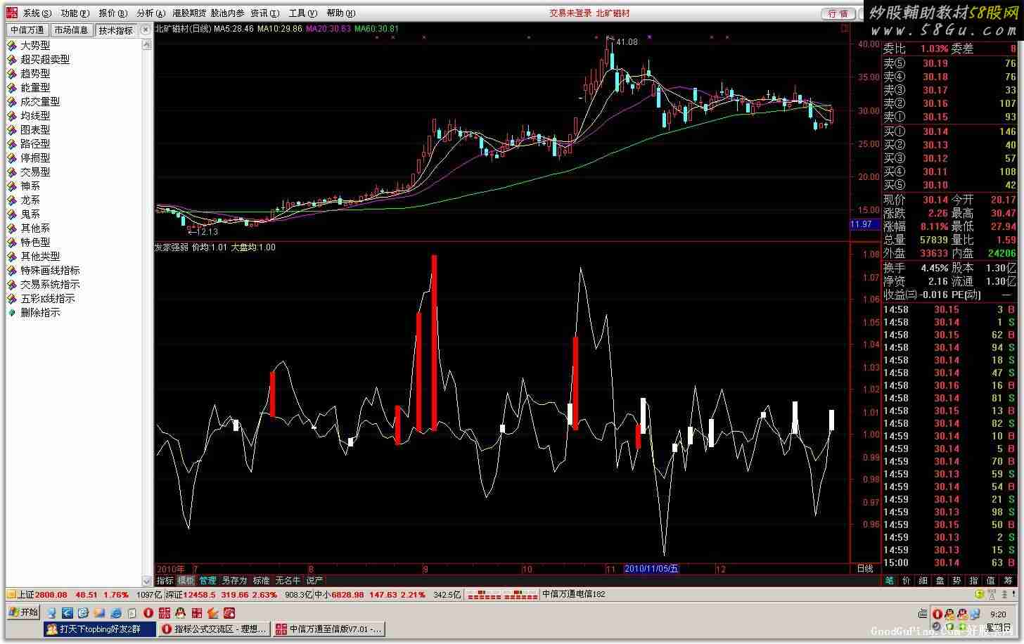 TYP:=(HIGH+LOW+CLOSE)/3; 价:=TYP/REF(TYP,1); 价5:=MA(价,5); 价均:EMA(TYP/REF(TYP,1),5);大盘:=(INDEXH+INDEXL+INDEXC)/3; 大盘价:=大盘/REF(大盘,1); 大盘价5:=MA(大盘价,5); 大盘均:EMA(大盘/REF(大盘,1),5); 角:=((ATAN((价均/REF(价均,1)-1)*100)*180/3.14115926)-(ATAN((大盘均/REF(大盘均,1)-1)*100)*180/3.14115926))>60; 横盘:=REF(((HHV(价均,3)-LLV(价均,3))/LLV(价均,3)),1)<=(0.1/100); 大横盘:=REF(((HHV(大盘均,3)-LLV(大盘均,3))/LLV(大盘均,3)),1)<=(0.1/100); STICKLINE(角,大盘均,价均,3,0),COLORRED ;价角:=ATAN((价均/REF(价均,1)-1)*100)*18000/3.14115926; 大盘角:=ATAN((大盘均/REF(大盘均,1)-1)*100)*18000/3.14115926; 角比:=REF(((HHV(价角,3)-LLV(价角,3))/LLV(价角,3)),1)<=(REF(((HHV(大盘角,3)-LLV(大盘角,3))/LLV(大盘角,3)),1))*0.001;STICKLINE(角比 AND 0<(大盘均-价均)<=0.01 AND REF(价均,1)<REF(大盘均,1),大盘均,价均,3,0),COLORWHITE ;