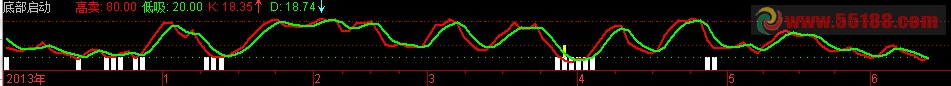 P1:=5; P2:=4; SSRCJL:=EMA(VOL,13); SSRCJE:=EMA(AMOUNT,13); SSRCBJX:=((SSRCJE / SSRCJL) / 100); SSRGL:=(((CLOSE - SSRCBJX) / SSRCBJX) * 100); 绝对底:=SSRGL<(0-18); 大底:=SSRGL<(0-14); 中底:=SSRGL<(0-10); 短底:=SSRGL<(0-6); STICKLINE((SSRGL < (0 - 18)),60,80,1,0),COLORRED; STICKLINE((SSRGL < (0 - 14)),40,60,1,0),COLORBLUE; STICKLINE((SSRGL < (0 - 10)),20,40,1,0),COLORYELLOW; STICKLINE((SSRGL < (0 - 6)),0,20,2,0),COLORWHITE; 高卖:80, POINTDOT,COLORRED; 低吸:20, POINTDOT,COLORGREEN; VAR1:=LLV(LOW,P1); VAR2:=HHV(HIGH,P1); K: EMA((CLOSE-VAR1)/(VAR2-VAR1)*100,P2),COLORRED,LINETHICK2; D: EMA(0.667*REF(K,1)+0.333*K,2),COLORGREEN,LINETHICK2; |
