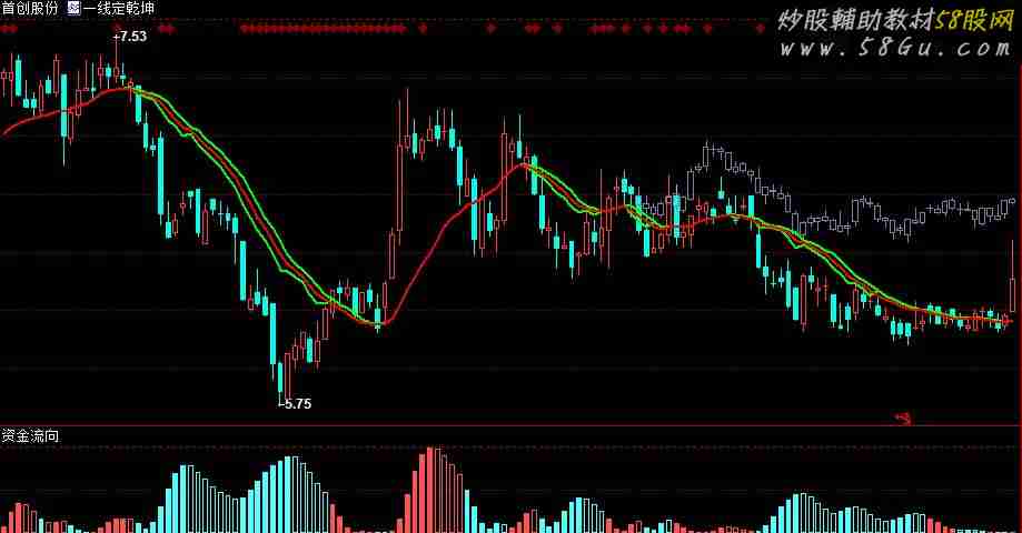 一、买入条件 1、个股前期有较大幅度的下调“量能饱和度”从中选出红柱出现的个股,并跟踪观察; 2、结合VIP功能里的“一线定乾坤”功能,红色线伸出绿色色围圈; 3、股价站上“一线定乾坤”红色本,红色线向右上方,角度越大越好; 4、KDJ指标金叉,即红线上穿黄线(正值0-100),股价收一小于5%以下时可少量介入,能站上“一线定乾坤”红线时可增仓; 5、资金流向变红或由绿变为空心里跟进。 二、卖出条件 1、股价跌破“一线定乾坤”红线卖出; 2、“一线定乾坤”红线拐头向下卖出; 3、KDJ死叉,红线低于黄线,并向下方延伸卖出; 4、资金流向,空心或变成绿色时卖出。 三、持股条件 1、股价在“一线定乾坤”红线之上; 2、KDJ维持金叉,红线在上黄线在下; 3、此一方法适用中短线,持股时间长短取决于股票特性 指标不是万能的 但是没有指标是万万不能的 至于好不好用 只有用过了才知道 指标的使用方法 每个人有不同的见解 欢迎大家总结交流 STICKLINE(C>=O,C,O,3,0),COLOR000045; STICKLINE(C>=O,C,O,2.5,0),COLOR000065; STICKLINE(C>=O,C,O,2,0),COLOR000085; STICKLINE(C>=O,C,O,1.5,0),COLOR0000A5; STICKLINE(C>=O,C,O,1,0),COLOR0000C5; STICKLINE(C>=O,C,O,0.5,0),COLOR0000E5; STICKLINE(C>=O,H,L,0,0),COLOR0000F5; STICKLINE(C<O,C,O,3,0),COLOR656500; STICKLINE(C<O,C,O,2.5,0),COLOR757500; STICKLINE(C<O,C,O,2,0),COLOR858500; STICKLINE(C<O,C,O,1.5,0),COLOR959500; STICKLINE(C<O,C,O,1,0),COLORA5A500; STICKLINE(C<O,C,O,0.5,0),COLORB5B500; STICKLINE(C<O,H,L,0,0),COLORC5C500; AA:MA(CLOSE,18)+ABS(MA(CLOSE,18)-REF(MA(CLOSE,18),1)),COLORGREEN,LINETHICK2; BB:MA(CLOSE,18)+MA(CLOSE,18)-REF(MA(CLOSE,18),1),COLORGREEN,LINETHICK2; CC:IF(MA(CLOSE,18)<BB,BB,MA(CLOSE,18)),COLORRED,LINETHICK2;   |