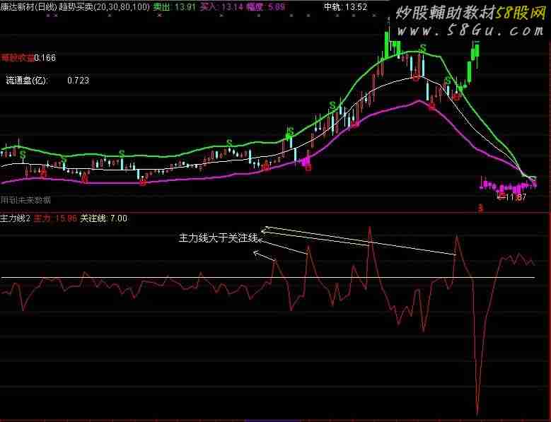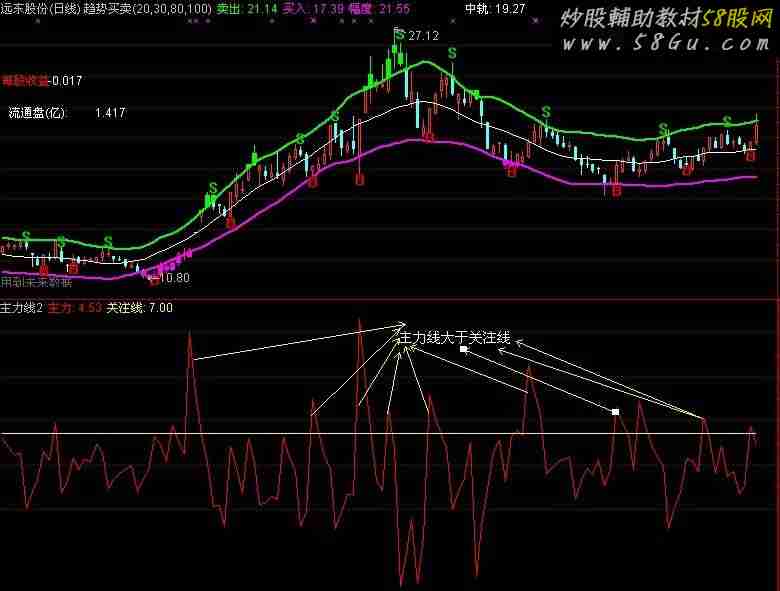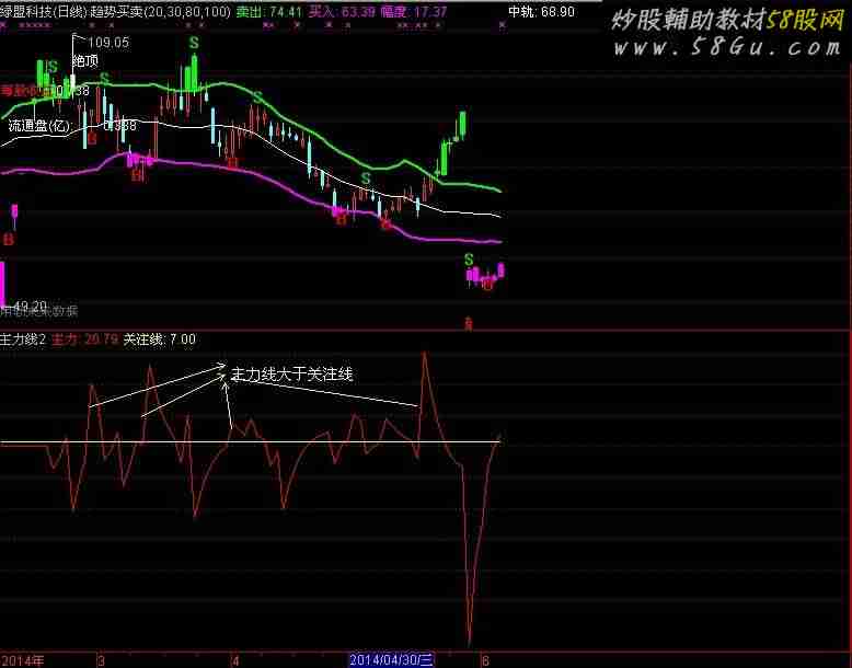 经长时间观察,与大家分享,主力线大于关注线,越大越好,注意是越大越好,从选股公式中选出一个主力线大于关注线且是最大的,嬴钱概率大于90%以上,超短线超作,1-3天,不要贪心;有未来但不景响选股,还可以选出好多这样的股票。另请高手帮写主力线大于关注线的选股公式,我的选股公式选不出全部主力线大于关注线的股票。 DIF1:=EMA(DCLOSE,12)-EMA(DCLOSE,26);DEA1:=EMA(DIF1,9);{柱状线}AAA1:=(DIF1-DEA1)*2*60;主力:AAA1-REF(AAA1,1),COLORRED;关注线:7;   |