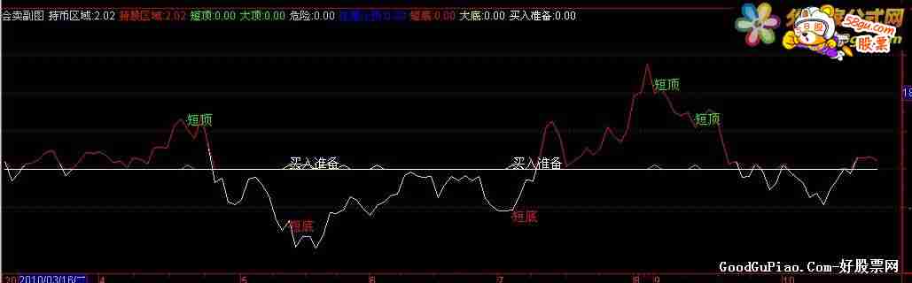 VAR1:=((CLOSE-MA(CLOSE,6))/MA(CLOSE,6)*100+(CLOSE-MA(CLOSE,24))/MA(CLOSE,24)*100+(CLOSE-MA(CLOSE,32))/MA(CLOSE,32)*100)/3; 持币区域:VAR1,COLORFEDCBA; 持股区域:IF(VAR1>0,VAR1,0),COLORRED; 短顶:VAR1>9 AND FILTER(VAR1<REF(VAR1,1),5),COLORGREEN; 大顶:VAR1>20 AND FILTER(VAR1<REF(VAR1,1),5),COLOR00FF00; VAR2:=HHV(VAR1>20,10); 危险: VAR2 AND CROSS((REF(HIGH,1)+REF(LOW,1))/2,MA(CLOSE,20)+2*STD(CLOSE,20)); 注意止损:VAR2 AND FILTER(VAR1< REF(VAR1,1),6) AND CROSS(MA(CLOSE,5),MA(CLOSE,2)); 短底:VAR1<-9 AND VAR1> REF(VAR1,1),COLORRED; 大底:VAR1<-20 AND FILTER(VAR1> REF(VAR1,1),5),COLORYELLOW; 买入准备:VAR1<-9 AND VAR1>REF(VAR1,1),COLORWHITE; DRAWTEXT(VAR1>9 AND FILTER(VAR1<REF(VAR1,1),5),VAR1+2,'短顶'),COLOR00FF00; DRAWTEXT(VAR1>20 AND FILTER(VAR1<REF(VAR1,1),5),VAR1+5,'大顶'),COLORFFFF00; DRAWTEXT(VAR2 AND CROSS((REF(HIGH,1)+REF(LOW,1))/2,MA(CLOSE,20)+2*STD(CLOSE,20)),VAR1+10,'危险'),COLOR00FFFF; DRAWTEXT(VAR2 AND FILTER(VAR1< REF(VAR1,1),6) AND CROSS(MA(CLOSE,5),MA(CLOSE,2)),VAR1+6,'注意止损'),COLORFF00FF; DRAWTEXT(FILTER(VAR1<-9 AND VAR1>REF(VAR1,1),18),VAR1-2,'短底'),COLOR0000FF; DRAWTEXT(VAR1<-20 AND FILTER(VAR1> REF(VAR1,1),5),VAR1-5,'大底'); DRAWTEXT(FILTER(VAR1<-9 AND VAR1>REF(VAR1,1),18),1,'买入准备');