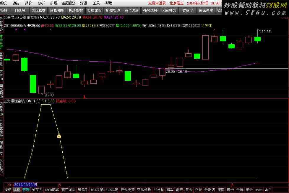 {主力螺旋挖金坑}DM:(COST(85)-COST(15))/(COST(85)+COST(15))/2*100<15,NODRAW;TJ:MA(IF(LOW<=LLV(LOW,30),(MA(IF(CLOSE*1.35<=1, SMA(ABS(L-REF(LOW,1)),3,1)/SMA(MAX(L-REF(LOW,1),0),3,1)*100*10, SMA(ABS(L-REF(LOW,1)),3,1)/SMA(MAX(L-REF(LOW,1),0),3,1)*100/10),3)+HHV(MA(IF(CLOSE*1.35<=1, SMA(ABS(L-REF(LOW,1)),3,1)/SMA(MAX(L-REF(LOW,1),0),3,1)*100*10, SMA(ABS(L-REF(LOW,1)),3,1)/SMA(MAX(L-REF(LOW,1),0),3,1)*100/10),3),30)*2)/2,0),3);挖金坑:REF(TJ,2)>REF(TJ,3)AND TJ<REF(TJ,1) AND COUNT(V/REF(MA(V,5),1)>=2 OR V/MA(V,5)>=2,30)>=1 AND (LAST(DM,10,1) OR EXIST((DM),20)) AND COUNT((C/REF(C,3)-1)*100<-10.1,3),NODRAW;DRAWICON(挖金坑,TJ-5,9);{主力螺旋挖金坑选股}DM:=(COST(85)-COST(15))/(COST(85)+COST(15))/2*100<15;TJ:=MA(IF(LOW<=LLV(LOW,30),(MA(IF(CLOSE*1.35<=1, SMA(ABS(L-REF(LOW,1)),3,1)/SMA(MAX(L-REF(LOW,1),0),3,1)*100*10, SMA(ABS(L-REF(LOW,1)),3,1)/SMA(MAX(L-REF(LOW,1),0),3,1)*100/10),3)+HHV(MA(IF(CLOSE*1.35<=1, SMA(ABS(L-REF(LOW,1)),3,1)/SMA(MAX(L-REF(LOW,1),0),3,1)*100*10, SMA(ABS(L-REF(LOW,1)),3,1)/SMA(MAX(L-REF(LOW,1),0),3,1)*100/10),3),30)*2)/2,0),3);挖金坑:REF(TJ,2)>REF(TJ,3)AND TJ<REF(TJ,1) AND COUNT(V/REF(MA(V,5),1)>=2 OR V/MA(V,5)>=2,30)>=1 AND (LAST(DM,10,1) OR EXIST((DM),20)) AND COUNT((C/REF(C,3)-1)*100<-10.1,3);    |