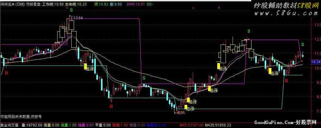 双线看盘(主图 源码 有未来)工作线:EMA(CLOSE,14),COLORFFFFFF; 生命线:EMA(CLOSE,47); VAR326:=IF(CLOSE>REF(CLOSE,1),88,0); VAR327:=IF(CLOSE/REF(CLOSE,1)>1.050 AND HIGH/CLOSE<1.010 AND VAR326>0, 91, 0); STICKLINE(VAR327>90,L*0.99,L*0.95,4,0),COLORYELLOW; DRAWTEXT(VAR327>90,LOW*0.95,'追涨'),COLORYELLOW; E5:=EMA(HHV(C,5),5); Q15:=EMA(HHV(C,15),15); HEX:=EMA(MA(CLOSE,5),2); HQA5:=IF(EMA(C, 3)< HEX,(EMA(C, 3)-(HEX-EMA(C, 3))),HEX); HE15:=IF(EMA(C, 6)>=HEX,(EMA(C, 6)-(HEX-EMA(C,6))),HEX); HE35:=IF(EMA(C, 9)>=HEX,(EMA(C, 9)-(HEX-EMA(C,9))),HEX); PT := REF(HIGH,1)-REF(LOW,1); CDP := (HIGH + LOW + CLOSE)/3; AH := CDP + PT; AL := CDP - PT; NH := 2*CDP-LOW; NL := 2*CDP-HIGH; HLOC:=HHV((REF(CDP+NH+NL+CLOSE,1))/4,1); LC:=HHV(HLOC,5); RMI:=SMA(MAX(C-LC,0),10,1)/SMA(ABS(C-LC),10,1)*100; H1:=EMA(HHV(RMI,1), 1); H10:=HHV(HHV(RMI,1),10); H21:=HHV(HHV(RMI,1),21); L5:=EMA(LLV(RMI,1),5); STICKLINE((HE35>=Q15 AND HEX<=HQA5 AND H1>=L5),L,H,0,1),COLOR0000F9,LINETHICK2; STICKLINE((HE35>=Q15 AND HEX>=HQA5),O,C,8,1),COLORYELLOW,LINETHICK1; 今量:=MA(VOL,1); 二:=MA(VOL,2); 三:=MA(VOL,3); 五:=MA(VOL,5); 十:=MA(VOL,10); 二十:=MA(VOL,20); 六十:=MA(VOL,60); 二量:=(今量>REF(二,1))*二; 三量:=(今量>REF(二,1)AND(二>REF(三,1)))*三; 五量:=(今量>REF(二,1)AND(二>REF(三,1)AND(三>REF(五,1))))*五; 十量:=(今量>REF(二,1)AND(二>REF(三,1)AND(三>REF(五,1)AND(五>REF(十,1)))))*十; 二十量:=(今量>REF(二,1)AND(二>REF(三,1)AND(三>REF(五,1)AND(五>REF(十,1)AND(十>REF(二十,1))))))*二十; 六十量:=(今量>REF(二,1)AND(二>REF(三,1)AND(三>REF(五,1)AND(五>REF(十,1)AND(十>REF(二十,1)AND(二十量>REF(六十,1)))))))*六十; 攻击量三:=(二量>REF(三量,1))*三量*0.002; 攻击量五:=(今量>REF(二量,1)AND(二量>REF(三量,1)AND(三量>REF(五量,1))))*五量*0.002; 攻击五量:=(攻击量五>REF(攻击量五,1))*攻击量五*300; 攻击量十:=(五量>REF(十量,1))*十量*0.002; 攻击量二十:=(十量>REF(二十量,1))*二十量; 攻击六十:=(今量>REF(二量,1)AND(二量>REF(三量,1)AND(三量>REF(五量,1)AND(五量>REF(十量,1)AND(十量>REF(二十量,1)AND(二十量>REF(六十量,1)))))))*六十量*0.002; 量三:=攻击量三>0; 量五:=攻击五量>0; 量十:=攻击量十>0; 量二十:=攻击量二十>0; 量六十:= 攻击六十>0; 强三:=量三>0; 强五:=量五>0; 强十:=量十>0; 强二十:=量二十>0; 强六十:=量六十>0; MA9:=MA(CLOSE+强三,1); TJ9:=C>=MA9; TJA0:=C<MA9; MA10:=MA(CLOSE+强五,1); TJ10:=C>=MA10; TJA1:=C<MA10; MA11:=MA(CLOSE+强十,1); TJ11:=C>=MA11; TJA2:=C<MA11; MA12:=MA(CLOSE+强二十,1); TJ12:=C>=MA12; TJA3:=C<MA12; MA13:=MA(CLOSE+强六十,1); TJ13:=C>=MA13; TJA4:=C<MA13; 顶:PEAK(CLOSE,10,1); 底:TROUGH(CLOSE,10,1),COLORCYAN; DRAWICON(CROSS(ZIG(3,10),REF(ZIG(3,10),1)),LOW*0.96,7); DRAWICON(CROSS(REF(ZIG(3,10),1),ZIG(3,10)),HIGH*1.04,8); SWL:=(EXPMA(CLOSE,5)*7+EXPMA(CLOSE,10)*3)/10,COLORGRAY; SWS:DMA(EMA(CLOSE,12),MAX(1,100*(SUM(VOL,5)/(3*CAPITAL)))),COLORMAGENTA; SS:IF(SWS<=REF(SWS,1) AND C<=SWS,SWS,DRAWNULL),COLORGREEN; |
