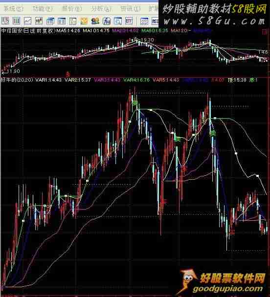 AAA:=(3*C+H+L+O)/6; VAR1:(8*AAA+7*REF(AAA,1)+6*REF(AAA,2)+5*REF(AAA,3)+4*REF(AAA,4)+3*REF(AAA,5)+2*REF(AAA,6)+REF(AAA,8))/36; VAR2:(HHV(VAR1,5)+HHV(VAR1,10)+HHV(VAR1,20))/3; VAR3:(LLV(VAR1,5)+LLV(VAR1,10)+LLV(VAR1,20))/3; VAR4:(HHV(VAR2,5)+HHV(VAR2,10)+HHV(VAR2,20))/3; VAR5:(LLV(VAR3,5)+LLV(VAR3,10)+LLV(VAR3,20))/3; VAR6:(LLV(VAR1,2)+LLV(VAR1,4)+LLV(VAR1,6))/3; {CROSS(VAR1,VAR6); DRAWICON(VAR1>VAR6,VAR1,1);};C,COLORRED; TY:=C; A1:=REF(TY,10)=HHV(TY,2*10+1); B1:=FILTER(A1,10); C1:=BACKSET(B1,10+1); HD:=FILTER(C1,10); A2:=REF(TY,10)=LLV(TY,2*10+1); B2:=FILTER(A2,10); C2:=BACKSET(B2,10+1); LD:=FILTER(C2,10); A:=REF(C,BARSLAST(HD)); B:=REF(L,BARSLAST(LD)); T1:=BARSLAST(HD)<BARSLAST(LD) AND NOT(HD) ; T2:=BARSLAST(HD)>BARSLAST(LD) AND NOT(LD); 顶:IF(T1,A,A),COLORYELLOW,POINTDOT; 底:IF(T2,B,B),COLORGREEN,POINTDOT;