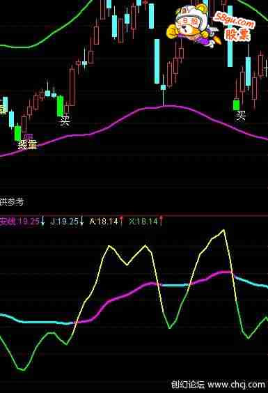 AA:=ABS((2*CLOSE+HIGH+LOW)/4-MA(CLOSE,30))/MA(CLOSE,30); 济安线:DMA((2*CLOSE+LOW+HIGH)/4,AA),LINETHICK3,COLORMAGENTA; CC:=(CLOSE/济安线); MA1:=MA(CC*(2*CLOSE+HIGH+LOW)/4,3); MAAA:=((MA1-济安线)/济安线)/3; TMP:=MA1-MAAA*MA1; J:IF(TMP<=济安线,济安线,DRAWNULL),LINETHICK3,COLORCYAN; A:TMP,LINETHICK2,COLORYELLOW; X:IF(TMP<=济安线,TMP,DRAWNULL),LINETHICK2,COLORGREEN; |
