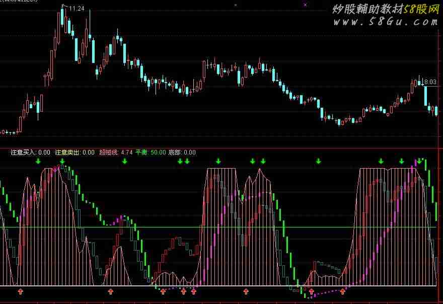 共振买卖指标指标源于KDJ的变化,实用性与提前性都非常强,红线到达高位盘整期间,时红时绿,不管是一直红下去都好,当共振方框缩小为小方框,风险会提前知道。 而使用共振的买点与卖点. 该指标有几个小技巧,下跌中,绿色压蓝色,下跌力度会较大,而且非常的坚决,黄色与红色重叠,红色方框在黄色下方则上涨力度大。 使用该指标者,禁贪。如果严格遵守指标规则,大赚不保证,起码不亏损。激进投资者在方框缩小的情况下可以轻仓参与,稳健投资者在等待出现底部方框(红色)在进场参与。 RSV1:=(CLOSE-LLV(LOW,27))/(HHV(HIGH,27)-LLV(LOW,27))*100; K1:=SMA(RSV1,5,1); D1:=SMA(K1,5,1); J1:=3*K1-2*D1; AA1:=EMA(J1,5); AA2:=REF(AA1,1); STICKLINE(AA1>AA2,AA1,AA2,1,0),COLORMAGENTA; STICKLINE(AA1<=AA2,AA1,AA2,1,0),COLORGREEN; RSV2:=(CLOSE-LLV(LOW,9))/(HHV(HIGH,9)-LLV(LOW,9))*100; K2:=SMA(RSV2,3,1); D2:=SMA(K2,3,1); J2:=3*K2-2*D2; BB1:=EMA(J2,5); BB2:=REF(BB1,1); STICKLINE(BB1>BB2,BB1,BB2,2,1),COLOR0000E5; STICKLINE(BB1<=BB2,BB1,BB2,2,1),COLOR858500; DD:=AA1>AA2 AND BB1>BB2; 注意买入:DD AND NOT(REF(DD,1)) AND (AA1<50 OR BB1<50) ,LINETHICK0; DRAWICON(注意买入,-5,1); 注意卖出:REF(DD,1)=1 AND NOT(DD),LINETHICK0; DRAWICON(注意卖出,105,2); 主力线:=3*SMA((CLOSE-LLV(LOW,27))/(HHV(HIGH,27)-LLV(LOW,27))*100,5,1)-2* SMA(SMA((CLOSE-LLV(LOW,27))/(HHV(HIGH,27)-LLV(LOW,27))*100,5,1),3,1),LINETHICK1,POINTDOT; 超短线:(((主力线-LLV(主力线,21))/(HHV(主力线,21)-LLV(主力线,21)))*(4))*(25),LINESTICK,COLORLIRED; 平衡:50; 底部:0,LINETHICK2;   |