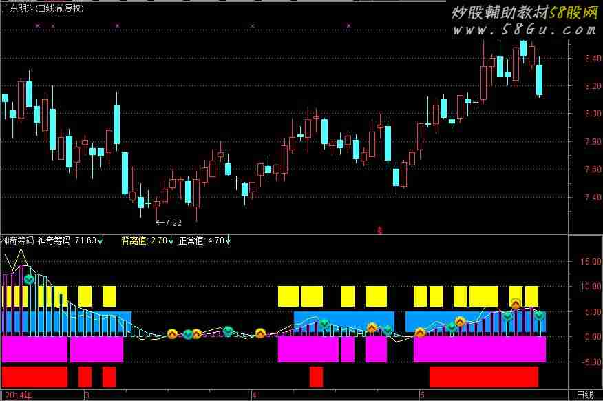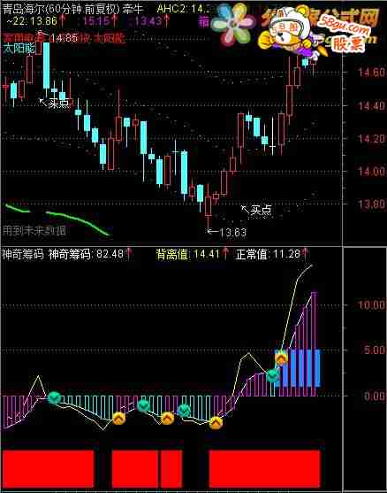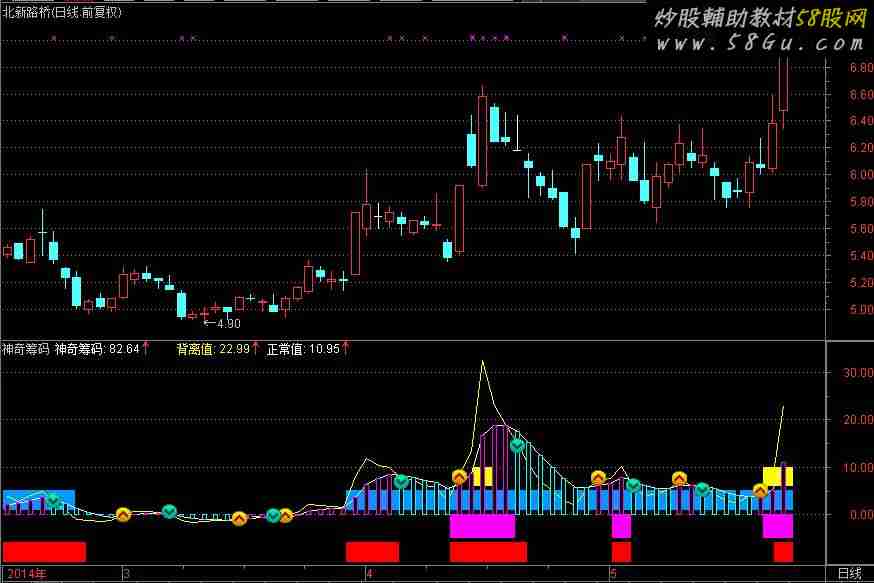 索罗斯模型老师的:神奇筹码 http://www.88gs.com/soft/sort013/sort05/down-72458.html音乐无限老师的“资金背离”:http://www.88gs.com/soft/sort013/sort05/down-72848.html将以上两位老师的指标合并成一个副图(占一个窗口),首先感谢二位老师, 如有侵权,请斑竹删除! 优化了一些参数,使指标显示更形象!