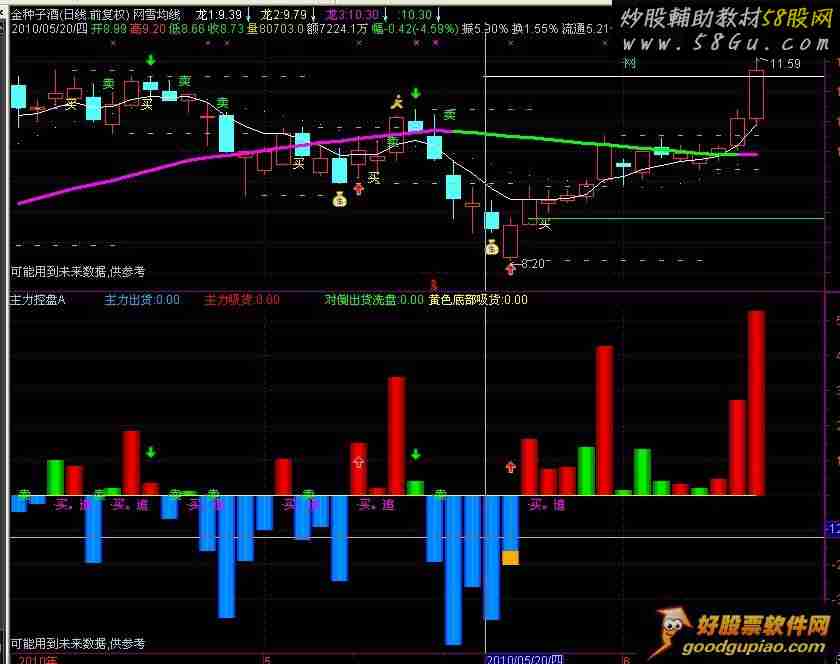 VAR2:=(((CLOSE - MA(CLOSE,6)) / MA(CLOSE,6)) * 100); VAR3:=(((CLOSE - MA(CLOSE,12)) / MA(CLOSE,12)) * 100); VAR4:=(((CLOSE - MA(CLOSE,24)) / MA(CLOSE,24)) * 100); VAR5:=(((VAR2 + (2 * VAR3)) + (3 * VAR4)) / 6); VAR6:=MA(VAR5,3); 开始控盘:=STICKLINE((VAR6 <= (0 - 10)),0,(0 - 20),3.5,0),COLOR00AAFF; STICKLINE((VAR6 <= (0 - 10)),0,(0 - 20),3.5,0),COLOR0044FF; STICKLINE((VAR6 <= (0 - 10)),0,(0 - 20),2.5,0),COLOR0088FF; STICKLINE((VAR6 <= (0 - 10)),0,(0 - 20),3,0),COLOR00AAFF; VAR1:=EMA(EMA(CLOSE,3),1); 控盘:=(VAR1-REF(VAR1,1))/REF(VAR1,1)*1000; STICKLINE(控盘<0,控盘,0,3.5,0),COLORFFAA00; STICKLINE(控盘<0,控盘,0,3.5.2,0),COLORFF4400; STICKLINE(控盘<0,控盘,0,2.5,0),COLORFF8800; STICKLINE(控盘<0,控盘,0,0,0),COLORFFAA00; 主力出货:0,COLORFFAA00; STICKLINE(控盘>REF(控盘,3) AND 控盘>0,控盘,0,3.5,0),COLOR000088; STICKLINE(控盘>REF(控盘,3) AND 控盘>0,控盘,0,2.5,0),COLOR0000AA; STICKLINE(控盘>REF(控盘,3) AND 控盘>0,控盘,0,1.5,0),COLOR0000CC; STICKLINE(控盘>REF(控盘,3) AND 控盘>0,控盘,0,1,0),COLOR0000EE; 主力吸货:0,COLOR0000FF; STICKLINE(控盘<REF(控盘,3) AND 控盘>0,控盘,0,3.5,0),COLOR008800; STICKLINE(控盘<REF(控盘,3) AND 控盘>0,控盘,0,2.5,0),COLOR00AA00; STICKLINE(控盘<REF(控盘,3) AND 控盘>0,控盘,0,1.5,0),COLOR00CC00; STICKLINE(控盘<REF(控盘,3) AND 控盘>0,控盘,0,1,0),COLOR00EE00; STICKLINE(DDX<0,0,DDX,3.5,0),COLOR008800; STICKLINE(DDX<0,0,DDX,2.5,0),COLOR00AA00; STICKLINE(DDX<0,0,DDX,1.5,0),COLOR00CC00; STICKLINE(DDX<0,0,DDX,1,0),COLOR00EE00; 对倒出货洗盘:0,COLOR00FF00; 黄色底部吸货:0,COLORYELLOW;DRAWTEXT(CROSS(控盘,0),0-3,'买。追'),COLORFF00FF; DRAWTEXT(CROSS(0,控盘),0-0,'卖'),COLORGREEN; DATA:=5; {多头买入} DRAWICON(ZIG(3,DATA)>REF(ZIG(3,DATA),1) AND REF(ZIG(3,DATA),1)<=REF(ZIG(3,DATA),2) AND REF(ZIG(3,DATA),2)<=REF(ZIG(3,DATA),3),L*0.98,1); {多头卖出} DRAWICON(ZIG(3,DATA)<REF(ZIG(3,DATA),1) AND REF(ZIG(3,DATA),1)>=REF(ZIG(3,DATA),2) AND REF(ZIG(3,DATA),2)>=REF(ZIG(3,DATA),3),H*1.02,2); 有未来函数 |
