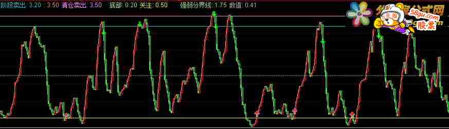 个股逃顶数值在3.2以上,尤其是到达3.5以上,一旦在高位出现绿色柱状,就要及时卖出了, 连续出现2个绿色柱状,说明下降通道打开了,更要逃命了,掌握住这点,你就是赢家。我们 不是庄家,不会卖到最高价,但通过这个指标,可以卖到较高价。 逃顶指标到达3.0以上的个股要谨慎买入了,对于逃顶指标 到达3.3以上的个股,原则上不买入了,此时的下跌风险远远大于上涨的机会。 (此公式对特强势有失灵现象VAR2:=LLV(LOW,10);VAR3:=HHV(HIGH,25);阶段卖出: 3.2,COLORC6C600;3.5,COLOR0088FF;清仓卖出: 3.5,COLORFF75FF;动力线:= EMA((CLOSE-VAR2)/(VAR3-VAR2)*4,4);STICKLINE(动力线>REF(动力线,1) ,动力线 ,REF(动力线,1),3 ,1),COLORRED; STICKLINE(动力线<=REF(动力线,1) ,动力线 ,REF(动力线,1),3 ,1),COLOR00FF00; 底部:0.2,COLOR70DB93;关注:0.5,COLORYELLOW;DRAWICON( FILTER(CROSS(动力线,关注),20),动力线+0.02 ,1);DRAWICON( FILTER(CROSS(清仓卖出,动力线),20),动力线+0.02,2);DRAWICON( FILTER(CROSS(动力线,底部),20),动力线+0.02 ,1);DRAWICON( FILTER(CROSS(阶段卖出,动力线),20),动力线+0.02,2);强弱分界线:1.75,POINTDOT,LINETHICK2,COLOR70DB93;数值:动力线,COLORA8A8A8; |