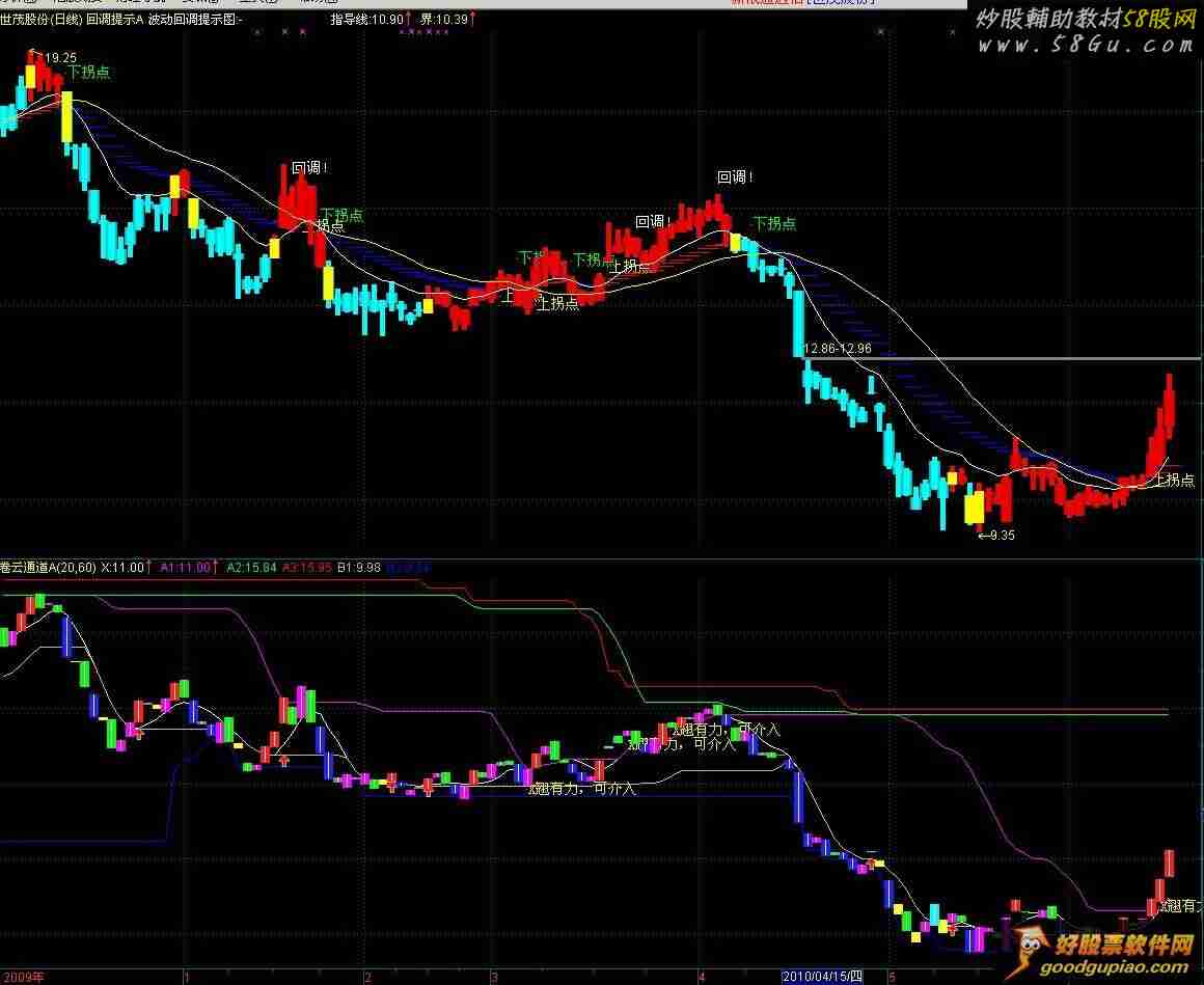 {卷云通道}{N1, 5, 60, 20; N2, 5, 90, 60} VAR1:=(LOW+HIGH+CLOSE)/3; X: MA(VAR1,5); A1: HHV(X,N1)COLORMAGENTA; A2: HHV(X,N2),COLORGREEN; A3: HHV(HIGH,N2)*0.98,COLOR0000FF; B1: LLV(X,N1); B2: LLV(LOW,N2)*1.02; DRAWICON(X>B1 AND REF(X,1)=REF(B1,1),B1*0.99,1); DRAWTEXT(X=A1 AND REF(X,1)<REF(A1,1),LOW,'X翘有力,可介入' ),COLORYELLOW; FD:=(H-L)/3;{分段} OPEN1:=O>FD*2+L; OPEN3:=O<FD+L; OPEN2:=NOT(OPEN1 OR OPEN3); CLOSE1:=C>FD*2+L; CLOSE3:=C<FD+L; CLOSE2:=NOT(CLOSE1 OR CLOSE3); DFZD:=CLOSE1 OR (OPEN3 AND CLOSE2); WQS1:=OPEN2 AND CLOSE2; KFZD:=NOT(DFZD OR WQS1); ZD:=(H+L)/2; QSXS:=ZD>REF(H,1); QSXX:=ZD<REF(L,1); WQS2:=NOT(QSXS OR QSXX); S1:=DFZD AND QSXS ; S2:=KFZD AND QSXX ; S3:=DFZD AND QSXX; S4:=KFZD AND QSXS; S5:=DFZD AND WQS2; S6:=KFZD AND WQS2; S7:=WQS1 AND (QSXS OR QSXX OR WQS2);STICKLINE(S2 ,C ,O,3,0 ),COLORFF2020; STICKLINE(S1,C,O,3 ,0 ),COLOR2020FF; STICKLINE(S3,C,O,3,0),COLORYELLOW; STICKLINE(S4,C,O,3,0),COLORCYAN; STICKLINE(S5,C,O,3,0),COLORMAGENTA; STICKLINE(S6,C,O,3,0),COLORGREEN; STICKLINE(S7,C,O,3,0),COLORGRAY; STICKLINE(1,C,O,0,0),COLORWHITE; |
