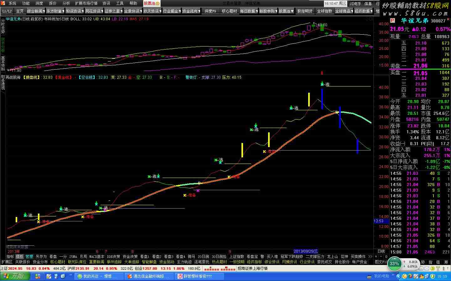 {再战股海} A:=AMOUNT/V/100; VARA:=EMA((((A-EMA(A,13))/EMA(A,13))*(0-100)),5); QQ:=EMA(((VARA/10)+EMA(A,13)),0); 行情线:=MA(A,1); 重心:=(C+0.618*REF(C,1)+0.382*REF(C,1)+0.236*REF(C,3)+0.146*REF(C,4))/2.382; 【操盘线】:EMA(((SLOPE(C,22)*20)+C),55),COLORYELLOW,LINETHICK4; 【黄金线】:IF(重心>=【操盘线】,【操盘线】,DRAWNULL),COLORRED,LINETHICK2; 【空仓线】:IF(重心<【操盘线】,【操盘线】,DRAWNULL),COLORCYAN,LINETHICK2; DRAWTEXT(ISLASTBAR,【操盘线】,'【操盘线】'),COLORRED; {引:EMA(CLOSE,2),LINETHICK1,COLORMAGENTA; 探:MA(CLOSE,5),LINETHICK1;} 变:EMA(CLOSE,5),LINETHICK1,COLORYELLOW; 金:IF(变>REF(变,1),变,DRAWNULL),COLORRED,LINETHICK1; 空:IF(变<REF(变,1),变,DRAWNULL),COLORGREEN,LINETHICK1; DRAWTEXT(ISLASTBAR,变,'【雷达线】'),COLORRED; {顶底信号} DA:=(EMA(H,1)+EMA(L,1)+EMA(H,1)+EMA(H,1))/4; DB:=EMA(REF(HHV(H,25),1),2),COLORGREEN,LINETHICK1; {DRAWTEXT(CROSS(DB,DA),DB,'←险'),COLORGREEN,LINETHICK1;} DRAWTEXT(CROSS(DA,【操盘线】),【操盘线】,'B'),COLORWHITE,LINETHICK1; {涨跌停显示} 涨停:=IF((C-REF(C,1))*100/REF(C,1)>=(10-0.01*100/REF(O,1)),1,0); STICKLINE(涨停,O,C,1,0),COLORYELLOW; ZDF:=(C-REF(C,1))/REF(C,1)*100; STICKLINE(ZDF<-9.9,O,C,1,0),COLORBLUE; {民间操手专用经典主图均线指标2} VAR3:=LLV(HIGH,240); VAR4:=100*(CLOSE-VAR3)/VAR3; VAR5:=(CLOSE-LLV(LOW,528))/(HHV(HIGH,528)-LLV(LOW,528))*100; VAR6:=(CLOSE-LLV(CLOSE,530))/(HHV(CLOSE,530)-LLV(CLOSE,530))*100; VAR7:=0; VAR8:=SMA(MAX(CLOSE-REF(CLOSE,1),0),34,1)/SMA(ABS(CLOSE-REF(CLOSE,1)),7,1)*100; VAR9:=SMA(MAX(CLOSE-REF(CLOSE,1),0),13,1)/SMA(ABS(CLOSE-REF(CLOSE,1)),13,1)*100; VAR10:=IF(TROUGHBARS(3,16,1)=0 AND HIGH>LOW+0.04,4,0); VAR11:=ZIG(3,6)>REF(ZIG(3,6),1) AND REF(ZIG(3,6),1)<=REF(ZIG(3,6),2) AND REF(ZIG(3,6),2)<=REF(ZIG(3,6),3); VAR12:=ZIG(3,6)<REF(ZIG(3,6),1) AND REF(ZIG(3,6),1)>=REF(ZIG(3,6),2) AND REF(ZIG(3,6),2)>=REF(ZIG(3,6),3); VAR13:=ZIG(3,22)>REF(ZIG(3,22),1) AND REF(ZIG(3,22),1)<=REF(ZIG(3,22),2) AND REF(ZIG(3,22),2)<=REF(ZIG(3,22),3); VAR14:=ZIG(3,22)<REF(ZIG(3,22),1) AND REF(ZIG(3,22),1)>=REF(ZIG(3,22),2) AND REF(ZIG(3,22),2)>=REF(ZIG(3,22),3); VAR15:=ZIG(3,51)>REF(ZIG(3,51),1) AND REF(ZIG(3,51),1)<=REF(ZIG(3,51),2) AND REF(ZIG(3,51),2)<=REF(ZIG(3,51),3); VAR16:=ZIG(3,51)<REF(ZIG(3,51),1) AND REF(ZIG(3,51),1)>=REF(ZIG(3,51),2) AND REF(ZIG(3,51),2)>=REF(ZIG(3,51),3); VAR17:=ZIG(3,72)>REF(ZIG(3,72),1) AND REF(ZIG(3,72),1)<=REF(ZIG(3,72),2) AND REF(ZIG(3,72),2)<=REF(ZIG(3,72),3); VAR18:=ZIG(3,72)<REF(ZIG(3,72),1) AND REF(ZIG(3,72),1)>=REF(ZIG(3,72),2) AND REF(ZIG(3,72),2)>=REF(ZIG(3,72),3); VAR19:=EMA(CLOSE,2)-EMA(CLOSE,150); 买1:=VAR10; 买2:=(VAR11+VAR13+VAR15+VAR17); 卖1:=(VAR12+VAR14+VAR16+VAR18); B:IF(买1>0 OR 买2>0,LOW*0.99,DRAWNULL),CROSSDOT,LINETHICK3,COLORYELLOW; S:IF(卖1>0,HIGH*1.01,DRAWNULL),CROSSDOT,LINETHICK3,COLORGREEN; VAR100:=(100 - ((90 * (HHV(HIGH,20) - CLOSE)) / (HHV(HIGH,20) - LLV(LOW,20)))); VAR200:=(100 - ((90 * (HHV(HIGH,20) - CLOSE)) / (HHV(HIGH,20) - LLV(LOW,20)))); VAR300:=(100 - MA(((100 * (HHV(HIGH,5) - CLOSE)) / (HHV(HIGH,5) - LLV(LOW,5))),34)); F:IF(CROSS(VAR200,MA(VAR300,5)),LOW * 0.98,DRAWNULL),CROSSDOT,LINETHICK3,COLORFF00FF; DRAWTEXT(CROSS(S,卖1),S,'←逃'),COLORWHITE,LINETHICK1; DRAWTEXT(CROSS(B,买1),B,'←准备'),COLORRED,LINETHICK1; {价:} {JC1:=(REF(C,3)+REF(C,5)+REF(C,7)+REF(C,8)+REF(C,13)+REF(C,21))/6; 参考价1:SMA(JC1,5,1),CIRCLEDOT,COLORGREEN; IF(C>=参考价1,参考价1,DRAWNULL),CIRCLEDOT,COLOR0000FF;} PH:=TROUGHBARS(2,5,1); LL:=HHV(H,PH); TJ1:=LL=HIGH AND LL<REF(LL,1);{//=1} TS:=SUMBARS(TJ1,2); TJ:=PEAKBARS(2,5,1)=1 AND TS>=PH; DRAWICON(TJ,HIGH*1.01+0.02,2); 警告灯:IF(TJ,HIGH*1.008,DRAWNULL),CROSSDOT,LINETHICK2,COLORCYAN; PL:=BARSLAST(TJ); 支撑:IF(BARSLAST(TJ1), REF(LOW,BARSLAST(TJ1)),DRAWNULL),COLOREA91B5; 压力:IF(BARSLAST(TJ),REF(HIGH,PL),DRAWNULL),COLORYELLOW; TJ_2:=LOW>REF(REF(LOW,TS),PL); DRAWTEXT(ISLASTBAR,压力,'压力'),COLORYELLOW; DRAWTEXT(ISLASTBAR,支撑,'支撑'),COLOREA91B5; |