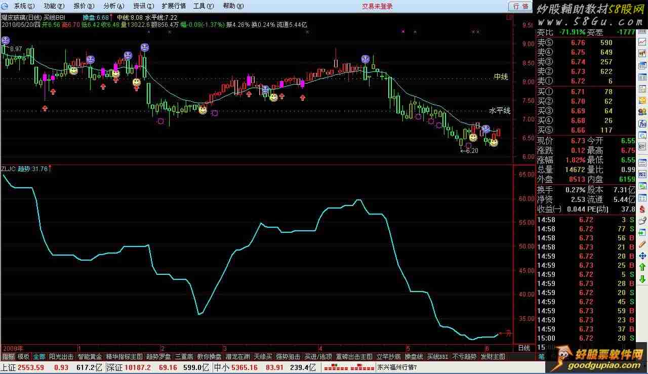 A1:=REF(C,1); A2:=SMA(MAX(C-A1,0),5,1)/SMA(ABS(C-A1),5,1)*1000; A3:=BARSLAST(REF(CROSS("RSI.RSI1"(6,12,24),"RSI.RSI2"(6,12,24)),1)); A4:=A2-LLV(A2,10); A5:=(MA(A4,2)*3+A4*13)/16; A6:=IF(A5>13,MA(A5,2),A5)/6; RSI1:=SMA(MAX(C-A1,0),6,1)/SMA(ABS(C-A1),6,1)*100; RSI2:=SMA(MAX(C-A1,0),12,1)/SMA(ABS(C-A1),12,1)*100; RSI3:=SMA(MAX(C-A1,0),24,1)/SMA(ABS(C-A1),24,1)*100; 压力:=HHV(MA(RSI2,3),12); 支撑:=LLV(MA(RSI2,3),12); 趋势:(HHV(MA(RSI2,3),12)+LLV(MA(RSI2,3),12))/2,COLORCYAN,LINETHICK2; DRAWTEXT(CURRBARSCOUNT=1 AND 趋势>REF(趋势,1),趋势,'←升'),COLORRED; DRAWTEXT(CURRBARSCOUNT=1 AND 趋势=REF(趋势,1),趋势,'←平'); DRAWTEXT(CURRBARSCOUNT=1 AND 趋势<REF(趋势,1),趋势,'←降'),COLORGREEN; |