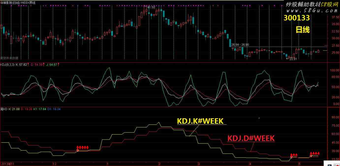{在日线下的周KDJ及金叉判别}K:KDJ.K#WEEK,COLORYELLOW;D:KDJ.D#WEEK,COLORRED;JC1:= CROSS(K,D);A:=BARSLAST(WEEKOFYEAR<>REF(WEEKOFYEAR,1))+1;K1:REF(K,A),NODRAW;D1:REF(D,A),NODRAW;JC2:=K1<D1 AND K>D;JC3:=KDJC.JC#WEEK;DRAWICON(JC1,K*1.20,1);DRAWICON(JC2,K*1.50,36);DRAWICON(JC3,K*1.80,38);{被调用的公式}{KDJC}{JC:CROSS(KDJ.K,KDJ.D);}; |