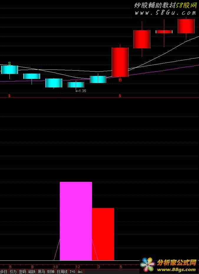 靠指标炒股必败无疑,切忌生搬硬套!直接上源码BIAS1:=(CLOSE-MA(CLOSE,6))/MA(CLOSE,6)*100; BIAS2:=(CLOSE-MA(CLOSE,12))/MA(CLOSE,12)*100; BIAS3:=(CLOSE-MA(CLOSE,24))/MA(CLOSE,24)*100; BIAS:=(BIAS1+2*BIAS2+3*BIAS3)/6; 乖离:=MA(BIAS,3); 接近底部:STICKLINE(乖离<-12 AND 乖离>=-18,2,0,6,0) , COLORRED; 抄底二:IF(乖离<-18,3,0),COLORFF35FF,LINETHICK1; STICKLINE(乖离<-18,3,0,6,0),COLORFF35FF;