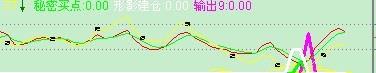 RSV:=(((CLOSE - LLV(LOW,9)) / (HHV(HIGH,9) - LLV(LOW,9))) * 100); K:=SMA(RSV,3,1); D:=SMA(K,3,1); J:=3*K-2*D; X:=LLV(J,2)=LLV(J,8); 形影买入: IF(CROSS(J,3),65,0),COLORFF00FF,LINETHICK3; DRAWTEXT(形影买入,70.1,' 跟庄'),COLOR00FF00; VA:=(2*C+H+L)/4; VB:=LLV(L,5); VC:=HHV(H,5); 红线上穿买:EMA((VA-VB)/(VC-VB)*100,5),COLORRED;禄线下穿卖:EMA(红线上穿买,3),COLORGREEN; 趋势:3*SMA((CLOSE- LLV(LOW,27))/(HHV(HIGH,27)-LLV(LOW,27))*100,5,1)-2*SMA(SMA((CLOSE-LLV(LOW,27))/(HHV(HIGH,27)-LLV(LOW,27))*100,5,1),3,1),COLOR00FFFF; 秘密买点: IF(趋势<=3,20,0),COLOR00FF00,LINETHICK3; 形影建仓: IF(趋势<5,40,0),COLORFFFFFF,LINETHICK3;