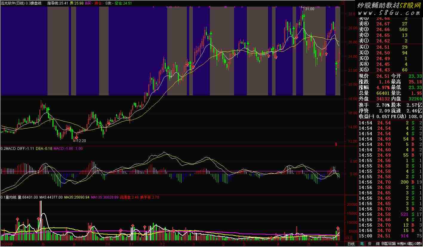 买线:=EMA(C,2); 卖线:=EMA(SLOPE(C,21)*20+C,42); STICKLINE(买线>=卖线,REFDATE(HHV(H,130),DATE),REFDATE(LLV(L,130),DATE),5,0), COLOR600020; STICKLINE(买线<卖线,REFDATE(HHV(H,130),DATE),REFDATE(LLV(L,130),DATE),5,0), COLOR404050; DRAWKLINE(H,O,L,C); 指导线:EMA((EMA(CLOSE,4)+EMA(CLOSE,6)+EMA(CLOSE,12)+EMA(CLOSE,24))/4,2),,COLORFFFFFF; 界:MA(CLOSE,27),COLOR00FFFF; B买:IF(CROSS(指导线,界) OR CROSS(买线,卖线),C,DRAWNULL),COLORMAGENTA,NODRAW; 持仓:IF(买线>=卖线,C,DRAWNULL),COLORRED,NODRAW; S卖:IF(CROSS(界,指导线) OR CROSS(卖线,买线),C,DRAWNULL),COLORLIGRAY,NODRAW; 空仓:IF(买线<卖线,C,DRAWNULL),COLORGREEN,NODRAW; DRAWICON(CROSS(买线,卖线),L,1); DRAWICON(CROSS(卖线,买线),H,2); |