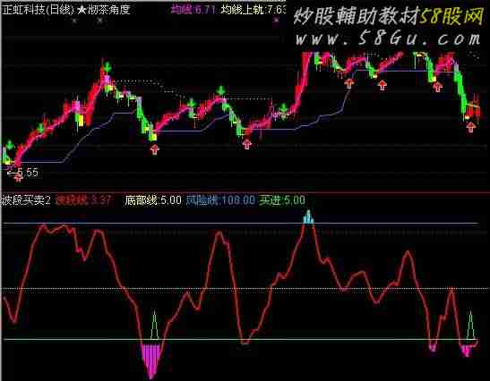 波段线: 5*SMA((CLOSE-LLV(LOW,27))/(HHV(HIGH,27)-LLV(LOW,27))*100,5,1)-3*SMA(SMA ((CLOSE-LLV(LOW,27))/(HHV(HIGH,27)-LLV(LOW,27))*100,5,1),3,1)-SMA(SMA(SMA ((CLOSE-LLV(LOW,27))/(HHV(HIGH,27)-LLV(LOW,27))*100,5,1),3,1),2,1),LINETHICK2,COLORRED; M1:=EMA(MA(波段线,5),3); STICKLINE(波段线>108 AND 波段线>=M1,波段线,108,2,0),COLORF0F000; STICKLINE(波段线<0 AND 波段线<M1,波段线,0,2,0),COLORF00FF0; 底部线: 5,COLOR00FFFF; 风险线: 108,COLORFF9D00; 底部买:=LLV(波段线,2)=LLV(波段线,8); 买进:IF(CROSS(波段线,REF(波段线+0.01,1)) AND 底部买 AND 波段线<0,30,5); |