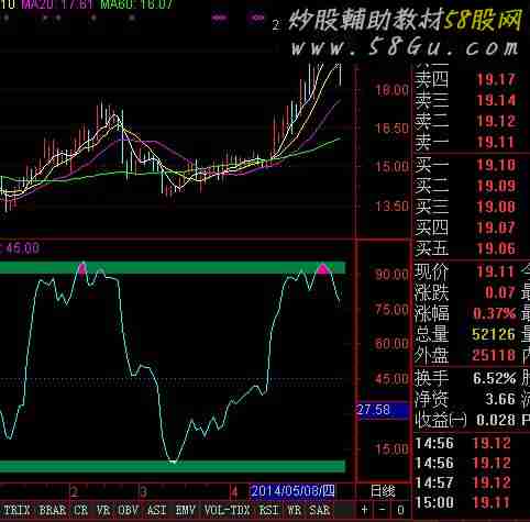 STICKLINE(C>0,90,95,10,0),COLOR408000; STICKLINE(C>0,10,5,10,0),COLOR408000; HDY:=EMA (100*(C-LLV(LOW,34))/(HHV(H,34)-LLV(LOW,34)),3); DRAWBAND(HDY,RGB(255,000,139),10,RGB(255,255,71)); STICKLINE(C>0,90,10,10,0),COLOR000000; 风险值:HDY,COLORCYAN,LINETHICK1; 警示线:45,COLORMAGENTA,LINETHICK1,POINTDOT; |