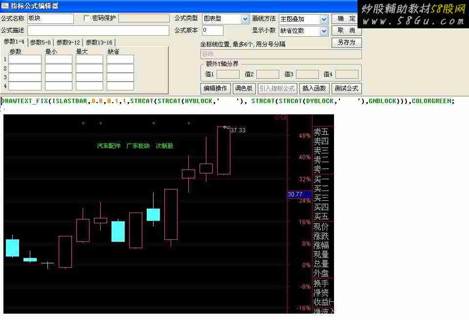 就这一行,在主图K线附近显示所属行业、地域、概念研究了坛子里各位大神的公式,简化成了一行。备注: