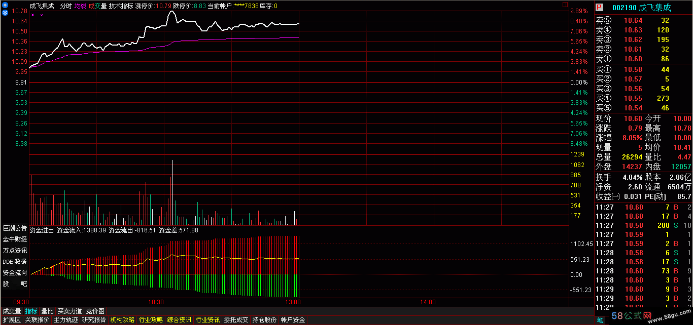 个人自用的分时抓涨停指标(通达信 分时指标 副图 贴图)