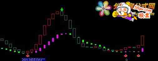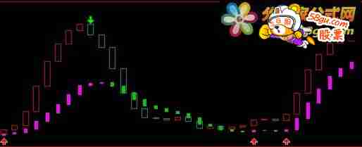 RSV2:=(CLOSE-LLV(LOW,9))/(HHV(HIGH,9)-LLV(LOW,9))*100; K2:=SMA(RSV2,3,1); D2:=SMA(K2,3,1); J2:=3*K2-2*D2; BB1:=EMA(J2,5); BB2:=REF(BB1,1); STICKLINE(BB1>BB2,BB1,BB2,2,1),COLOR0000CC; STICKLINE(BB1<=BB2,BB1,BB2,2,1),COLOR353500; STICKLINE(BB1<=BB2,BB1,BB2,2,1),COLOR555500; STICKLINE(BB1<=BB2,BB1,BB2,2,1),COLOR757500; STICKLINE(BB1<=BB2,BB1,BB2,2,1),COLOR858500; RSV1:=(CLOSE-LLV(LOW,27))/(HHV(HIGH,27)-LLV(LOW,27))*100; K1:=SMA(RSV1,5,1); D1:=SMA(K1,5,1); J1:=3*K1-2*D1; AA1:=EMA(J1,5); AA2:=REF(AA1,1); STICKLINE(AA1>AA2,AA1,AA2,1,0),COLORFF00FF; STICKLINE(AA1<=AA2,AA1,AA2,1,0),COLOR006600; STICKLINE(AA1<=AA2,AA1,AA2,1,0),COLOR009900; STICKLINE(AA1<=AA2,AA1,AA2,1,0),COLOR00BB00; STICKLINE(AA1<=AA2,AA1,AA2,1,0),COLOR00CC00; DD:=AA1>AA2 AND BB1>BB2; ATB:=DD AND NOT(REF(DD,1)) AND (AA1<50 OR BB1<50) ,LINETHICK0; DRAWICON(ATB,-5,1); ATS:=REF(DD,1)=1 AND NOT(DD),LINETHICK0; DRAWICON(ATS,110,2);  |