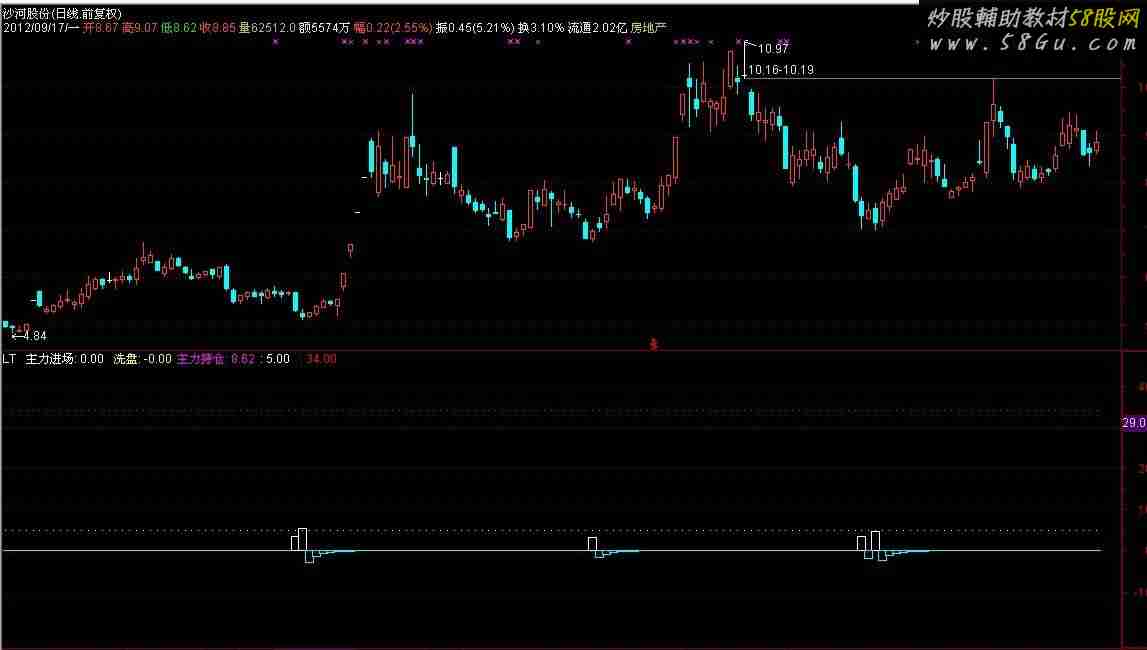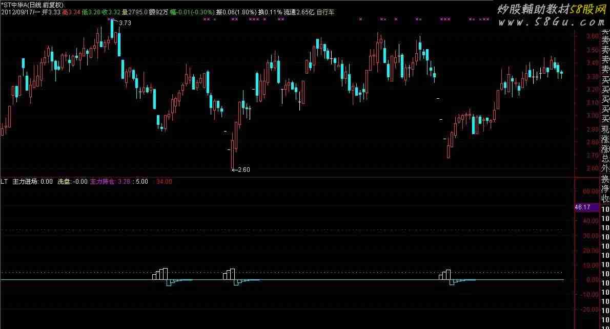 VAR2:=REF(LOW,1); VAR3:=SMA(ABS(LOW-VAR2),13,1)/SMA(MAX(LOW-VAR2,0),13,1)*100; VAR4:=EMA(IF(CLOSE*1.2,VAR3*13,VAR3/13),13); VAR5:=LLV(LOW,34); VAR6:=HHV(VAR4,34); VAR7:=IF(LLV(LOW,56),1,0); VAR8:=EMA(IF(LOW<=VAR5,(VAR4+VAR6*2)/2,0),3)/618*VAR7; VAR9:=EMA(CLOSE,5); VAR10:=(CLOSE-MA(CLOSE,34))/MA(CLOSE,34)*(10); VAR11:=EMA(IF(LOW<=VAR5,(VAR4+VAR6*2)/2,0),3)/618*VAR7*(-1); VAR12:=EMA(CLOSE,5)*(-1); STICKLINE(VAR8>REF(VAR8,1),0,VAR8,4,1),COLOR10FFFF,LINETHICK0; 主力进场:IF(VAR8>REF(VAR8,1),VAR8*8,0),COLOR10FFFF,LINETHICK0; STICKLINE(VAR11>REF(VAR11,1),0,VAR11,4,1),COLORFFF810; 洗盘:IF(VAR11>REF(VAR11,1),VAR11*8,0),COLORFFF810,LINETHICK0; 主力持仓:LOW,COLORFF10FF,LINETHICK0; 5,COLORWHITE,POINTDOT; (34),COLORRED,POINTDOT;  |