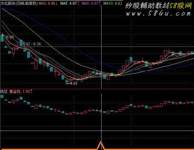 说明:出现后等收盘价站上10日线在买进 N:=1;均价:=(2*C+(H-L)/2+L+O)/4;价差:=SUM(均价-REF(均价,1),2)/2;高低:=(均价+价差);实价:=(高低+均价)/2;AA:=EMA(((SLOPE(实价,21)*20)+实价),63);BB:=EMA(((SLOPE(均价,21)*20)+均价),63);多空线:=((AA+BB)/2);持仓:=(3*多空线-2*EMA(多空线,84))/EMA(多空线,84)*50;黄金坑:CROSS(持仓,REF(持仓,1))AND REF(持仓,1)<N,LINETHICK4; |
