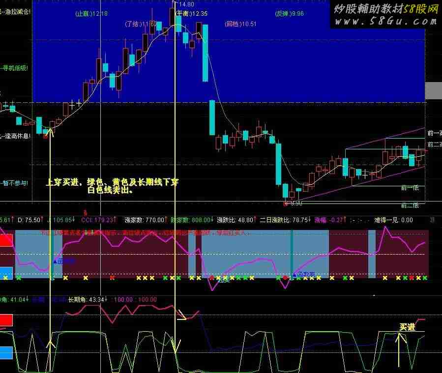 RSV:=(CLOSE-LLV(LOW,9))/(HHV(HIGH,9)-LLV(LOW,9)); K:=SMA(RSV,3,1); D:=SMA(K,3,1); K角:=ATAN((K/REF(K,3)-1)*100)*90/3.1416,COLORCYAN; D角:ATAN((D/REF(D,1)-1)*100)*90/3.1416,COLORGREEN; 长期:(C-LLV(L,30))/(HHV(C,30)-LLV(L,30))*100,COLORBLUE; 长期角:ATAN((长期/REF(长期,5)-1)*100)*90/3.1416,COLORYELLOW; IF(长期>79,长期,DRAWNULL),COLORMAGENTA,LINETHICK2; IF(长期>49,长期,DRAWNULL),COLORLIMAGENTA,LINETHICK2;