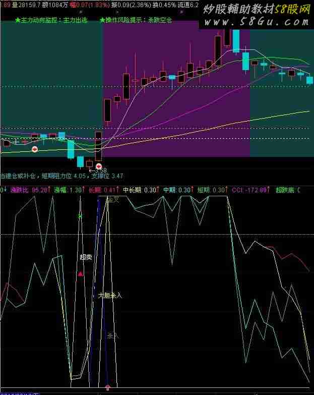 超卖:CCI<-200 AND CCI<REF(CCI,1) AND 长期>REF(长期,1) AND 中长期>REF(中长期,1);
