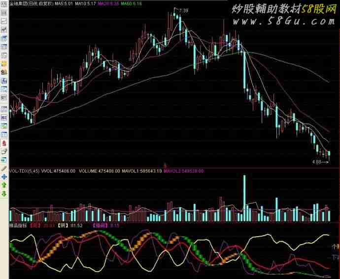 {【精品指标】} VAR1:=MA(LOW,1); VAR2:=MA(HIGH,2); VAR3:=MA(CLOSE,2); VAR4:=(VAR3-LLV(VAR1,9))/(HHV(VAR2,9)-LLV(VAR1,9))*100; VAR5:=SMA(VAR4,3,1); 【阳】: SMA(VAR5,3,1),COLORRED,LINETHICK2; Y1:=SMA(【阳】,3,1); VAR6:=(HHV(VAR2,9)-VAR3)/(HHV(VAR2,9)-LLV(VAR1,9))*100; 【阴】: SMA(VAR6,3,1),COLORYELLOW,LINETHICK2; Y2:=SMA(【阴】,3,1); VAR7:=REF(VAR3,1); VAR8:=SMA(MAX(VAR3-VAR7,0),13,1)/SMA(ABS(VAR3-VAR7),13,1)*100; VARB:=MA(INDEXC,3)*100/MA(INDEXC,10)-100; VARC:=MA(CLOSE,3)*100/MA(CLOSE,10)-100; VARD:=CLOSE*100/MA(CLOSE,10)-100; VARE:=IF(VARB>10,10,VARB); VARF:=IF(VARE<-10,-10,VARE); VAR10:=IF(VARC>10,10,VARC); VAR11:=IF(VAR10<-10,-10,VAR10); VAR12:=REF(VARB,1); VAR13:=100*(VAR3-REF(VAR3,1))/REF(VAR3,1); VAR14:=INDEXC; VAR15:=REF(VAR14,1); VAR16:=100*(VAR14-VAR15)/VAR14; VAR17:=MA(VAR13,3); VAR18:=MA(VAR16,3); VAR19:=(3*CLOSE+VAR1+OPEN+HIGH)/6; VAR1A:=(20*VAR19+19*REF(VAR19,1)+18*REF(VAR19,2)+17*REF(VAR19,3)+16*REF(VAR19,4)+15*REF(VAR19,5)+14*REF(VAR19,6)+13*REF(VAR19,7)+12*REF(VAR19,8)+11*REF(VAR19,9)+10*REF(VAR19,10)+9*REF(VAR19,11)+8*REF(VAR19,12)+7*REF(VAR19,13)+6*REF(VAR19,14)+5*REF(VAR19,15)+4*REF(VAR19,16)+3*REF(VAR19,17)+2*REF(VAR19,18)+REF(VAR19,20))/210; VAR1B:=MA(VAR1A,12); VAR1C:=EMA(VAR1A,5); VAR1D:=ABS(VAR1A-VAR1B); VAR1E:=REF(VAR3,1)*0.015; VAR1F:=REF(INDEXC,1); VAR24:=ZIG(3,10)>REF(ZIG(3,10),1) AND REF(ZIG(3,10),1)<REF(ZIG(3,10),2); VAR25:=ZIG(3,10)<REF(ZIG(3,10),1) AND REF(ZIG(3,10),1)>REF(ZIG(3,10),2); VAR26:=MA(CLOSE,26); VAR27:=VAR26+2*STD(VAR3,26); VAR28:=VAR26-2*STD(VAR3,26); VAR29:=VAR26+2*STD(REF(VAR3,1),26); VAR2A:=VAR26-2*STD(REF(VAR3,1),26); VAR2B:=IF(VAR24 AND VAR1<VAR28,1,0); VAR2C:=IF(VAR25*VAR1 AND VAR2>VAR27,2,VAR2B); VAR2D:=IF(VAR2C=1,80,45); VAR2E:=IF(VAR2C=2,0,VAR2D); VAR2F:=VAR2E; D1:=EMA(3*SMA((CLOSE-LLV(LOW,27))/(HHV(HIGH,27)-LLV(LOW,27))*100,5,1) -2*SMA(SMA((CLOSE-LLV(LOW,27))/(HHV(HIGH,27)-LLV(LOW,27))*100,5,1),3,1),5); D2:=REF(D1,1); STICKLINE(D1>=REF(D1,1),D1,D2,5,0),COLOR0055AA; STICKLINE(D1<REF(D1,1),D1,D2,5,0),COLOR006600; {STICKLINE(D1>=REF(D1,1),D1,D2,2,0),COLOR0077CC;} STICKLINE(D1>=REF(D1,1),D1,D2,1,0),COLOR0099DD; {STICKLINE(D1<REF(D1,1),D1,D2,2,0),COLOR009900;} STICKLINE(D1<REF(D1,1),D1,D2,1,0),COLOR00BB00; 【强弱】:SMA(MAX(VAR3-VAR7,0),5,1)/SMA(ABS(VAR3-VAR7),5,1)*100; DRAWTEXT(ISLASTBAR=1 AND (CROSS(【强弱】,Y2) OR VAR2E>45),80,' 短期吃货!'),COLORRED; DRAWTEXT(ISLASTBAR=1 AND (CROSS(Y1,【强弱】) OR VAR2E<45),80,' 短期出货!'),COLORGREEN; DRAWTEXT(ISLASTBAR=1 AND VAR17>VAR18,60,' 个股强于大盘!'),COLORFF00FF; DRAWTEXT(ISLASTBAR=1 AND VAR12>VARF,50,' 大盘处在下降通道'),COLORCCFF99; DRAWTEXT(ISLASTBAR=1 AND VAR18>=VAR17,60,' 个股弱于大盘!'),COLOR00FFFF; DRAWTEXT(ISLASTBAR=1 AND VAR1A>VAR1B AND VAR1D>VAR1E AND NOT(CROSS(75,VAR8)),40,' 持股待涨!'),COLOR0099FF; DRAWTEXT(ISLASTBAR=1 AND VAR1A<VAR1B AND VAR1D>VAR1E AND NOT(CROSS(【强弱】,20)),40,' 下调减持!'),COLORFF9900; DRAWTEXT(ISLASTBAR=1 AND VAR1D<=VAR1E,40,' 盘整阶段!'),COLORFF9900; DRAWTEXT(ISLASTBAR=1 AND (INDEXC-VAR1F)/VAR1F>0.035,40,'出现井喷行情!'),COLORRED; |