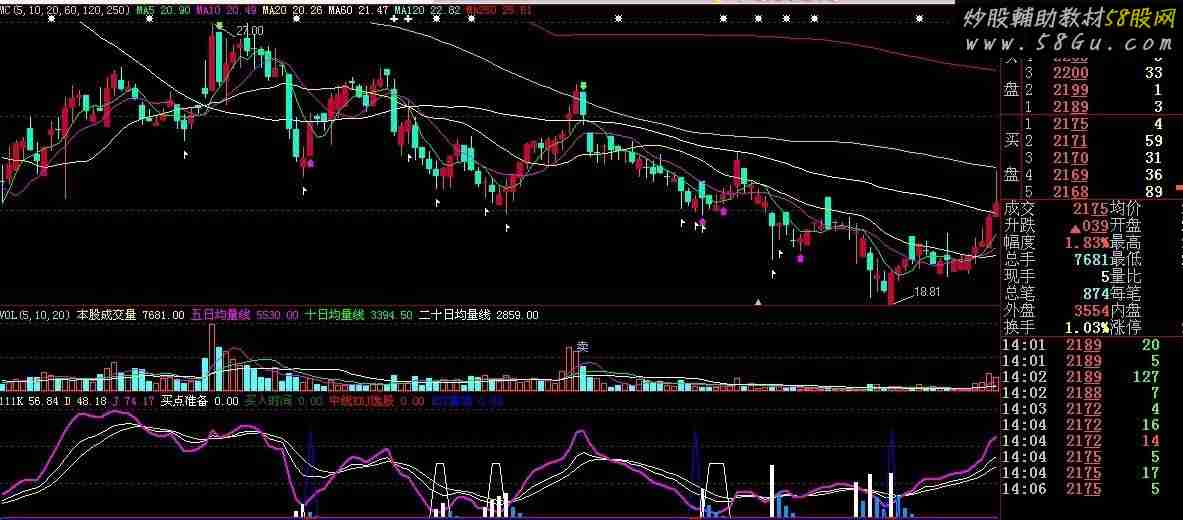 RSV:=(C-LLV(L,27))/(HHV(H,27)-LLV(L,27))*100;K:SMA(RSV,5,1),COLORFFFFFF;D:SMA(K,3,1),COLOR00FFFF;J:3*K-2*D,COLORFF00FF,LINETHICK2;买点准备: IF(J<=10,50,0),COLORFFFFFF;买入时间: IF(CROSS(J,2),100,0),COLORGREEN,LINETHICK2;VAR1:=REF((LOW+OPEN+CLOSE+HIGH)/4,1);VAR2:=SMA(ABS(LOW-VAR1),13,1)/SMA(MAX(LOW-VAR1,0),10,1);VAR3:=EMA(VAR2,10);VAR5:=EMA(IF(LOW=LLV(LOW,33),VAR3,0),3);主力进场:STICKLINE(VAR5>REF(VAR5,1),0,VAR5,4,0 ),COLORWHITE;{http://bbs.laoqianzhuang.com/forum-14064-1.html通达信股票指标公式}主力洗盘:STICKLINE(VAR5<REF(VAR5,1),0,VAR5,4,0 ),COLORFF9900;{中线KDJ选股公式}中线KDJ选股:CROSS(J,2),COLORRED,LINETHICK2;{RSI4}LC:=REF(CLOSE,1);RSI4:=((SMA(MAX(CLOSE - LC,0),4.1,1))/(SMA(ABS(CLOSE - LC),4.1,1)))*(100);RSI蛮准:(CROSS(RSI4,11))*(80),COLORBLUE; |