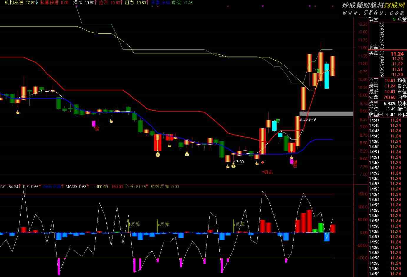 操作说明;CCI指标又叫顺势指标,是指导股市投资的一种中短线指标,CCI是一个在实战中相当重要的技术指标,偶的思路是把主力控盘指标和CCI结合这样效果会更直观一点, 目前大多数个股均出现了CCI指标跌破-100的现象,这个本身就是一个即将爆发大规模反弹的前兆。日线CCI跌至-100以下位置,要割要逃,一切等反弹之后再说。牛市急跌中如此, 熊市暴跌中亦适用。