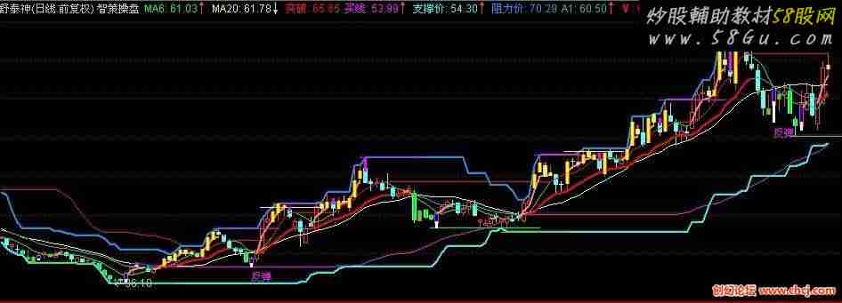 MA6:MA(C,6),COLORGREEN; MA20:MA(CLOSE,20),COLORYELLOW; 突破:HHV(MA(C,6),30),COLOR1100FF; 买线:LLV(MA(C,20),30),COLORMAGENTA; 支撑价:LLV(LOW,34) ,COLORCYAN,LINETHICK2; 阻力价:HHV(HIGH,19),COLORFF9900, LINETHICK2; A1:REF(EMA(C,14),1)COLORLIBLUE,LINETHICK1; A1X:=(EMA(C,14)-A1)/A1*100; ¥:IF(A1X>=0,A1,DRAWNULL)COLORRED,LINETHICK2; E2:=EXPMA(CLOSE,2); 白追涨:EXPMA(CLOSE,3),NODRAW; 五日:=EXPMA(CLOSE,5); 粉杀跌:EXPMA(CLOSE,10),NODRAW; E16:=EXPMA(CLOSE,16); 黄防套:EXPMA(CLOSE,20),NODRAW; E30:=EXPMA(CLOSE,30); 蓝上轿:EXPMA(CLOSE,57),NODRAW; 红铡刀:EXPMA(CLOSE,110),NODRAW,COLORRED; 三日:=EXPMA(CLOSE,3),LINETHICK2,COLORGREEN; K紫后白蓝点买:IF(三日>REF(三日,1),三日,DRAWNULL),LINETHICK2,COLORLIRED; V8:=MA(CLOSE,27); V9:=(CLOSE-V8)/V8*100; VA:=MA(V9,2); VC:=BARSLAST(CROSS(VA,10)=1); ZSW1125:=VA>10 AND VC>3; 登高信号:=ZSW1125&&VA; D7:=REF(E2,1)>REF(白追涨,1)&&REF(白追涨,1)>REF(五日,1)&&REF(五日,1)>REF(粉杀跌,1)&&REF(粉杀跌,1)>REF(黄防套,1)&&REF(黄防套,1)>REF(蓝上轿,1)&&REF(蓝上轿,1)>REF(红铡刀,1); D47:=REF(粉杀跌,1)>REF(黄防套,1)&&REF(黄防套,1)>REF(蓝上轿,1)&&REF(蓝上轿,1)>REF(红铡刀,1); K7:=REF(E2,1)<REF(白追涨,1)&&REF(白追涨,1)<REF(五日,1)&&REF(五日,1)<REF(粉杀跌,1)&&REF(粉杀跌,1)<REF(黄防套,1)&&REF(黄防套,1)<REF(蓝上轿,1)&&REF(蓝上轿,1)<REF(红铡刀,1); 红警线:=REF(H,5)>REF(H,4)&&REF(H,5)>REF(H,3)&&REF(H,5)>REF(H,2)&&REF(H,5)>REF(H,1)&&REF(H,5)>=REF(H,6)&&REF(H,5)>=REF(HHV(H,18),6); 绿警线:=REF(L,5)<REF(L,4)&&REF(L,5)<REF(L,3)&&REF(L,5)<REF(L,2)&&REF(L,5)<REF(L,1)&&REF(L,5)<=REF(L,6)&&REF(L,5)<=REF(LLV(L,18),6); RSV:=(CLOSE-LLV(LOW,9))/(HHV(HIGH,9)-LLV(LOW,9))*100; KDJ区域:=SMA(RSV,3,1); STICKLINE(K7&&REF(E2,1)<REF(E2,2)&&O<REF(C,1)*0.94&&REF(O,1)>REF(C,1)&&C>REF(C,1)*0.95,L-(H-L)*0.1,L+(H-L)*0.1,8,0),COLORWHITE; STICKLINE(D7&&REF(E2,1)>REF(E2,2)&&O>REF(C,1)*1.07&&C<REF(C,1)*1.099&&C<=O,H,O-(O-C)*0.2,0.15,0),COLORMAGENTA; STICKLINE(D7&&REF(E2,1)>REF(E2,2)&&O>REF(C,1)*1.07&&C<REF(C,1)*1.099&&C<=O,O-(O-C)*0.2,O-(O-C)*0.65,0.15,0),COLORYELLOW; STICKLINE(D47&&REF(O,1)>REF(C,2)*1.07&&REF(O,1)>REF(C,1)&&REF(E2,1)>REF(E2,2)&&E2>REF(E2,1)&&C>=O,L,O+(C-O)*0.25,0.15,0),COLORWHITE; STICKLINE(D47&&REF(O,1)>REF(C,2)*1.07&&REF(O,1)>REF(C,1)&&REF(E2,1)>REF(E2,2)&&E2>REF(E2,1)&&KDJ区域<87&&C>=O,O+(C-O)*0.2,O+(C-O)*0.2,12,0),COLORCYAN; STICKLINE(红警线&&C<REF(H,5),REF(H,5),REF(H,5),55,0),COLORMAGENTA; STICKLINE(绿警线&&C>REF(L,5),REF(L,5),REF(L,5),55,0),COLORGREEN; STICKLINE(REF(登高信号,1)<=0&&登高信号>REF(登高信号,1)&&登高信号>0,H,H,50,0),COLORYELLOW; STICKLINE(REF(KDJ区域,1)>72&&C<=O&&C<=E2&&REF(C,1)>REF(E2,1)&&REF(C,2)>REF(E2,2),H,O-(O-C)*0.2,0.15,0),COLORMAGENTA; STICKLINE(REF(KDJ区域,1)>72&&C>O&&C<=E2&&REF(C,1)>REF(E2,1)&&REF(C,2)>REF(E2,2),H,C-(C-O)*0.2,0.15,0),COLORMAGENTA; STICKLINE(KDJ区域>72&&C>=白追涨,C,O,1,0),COLORYELLOW; STICKLINE(KDJ区域<30&&C<=白追涨,C,O,1,0),COLORGREEN; STICKLINE(REF(KDJ区域,1)<30&&C>=O&&C>=E2&&REF(C,1)<REF(E2,1)&&REF(C,2)<REF(E2,2),L,O+(C-O)*0.25,0.15,0),COLORWHITE; STICKLINE(REF(KDJ区域,1)<30&&C>=O&&C>=E2&&REF(C,1)<REF(E2,1)&&REF(C,2)<REF(E2,2),O+(C-O)*0.25,O+(C-O)*0.85,0.15,0),COLORBLUE; STICKLINE(REF(KDJ区域,1)<30&&C<O&&C>=E2&&REF(C,1)<REF(E2,1)&&REF(C,2)<REF(E2,2),L,C+(O-C)*0.25,0.15,0),COLORWHITE; STICKLINE(REF(KDJ区域,1)<30&&C<O&&C>=E2&&REF(C,1)<REF(E2,1)&&REF(C,2)<REF(E2,2),C+(O-C)*0.25,C+(O-C)*0.9,0.15,0),COLORBLUE; Y:=REF(KDJ区域,1)<30&&C>=O&&C>=E2&&REF(C,1)<REF(E2,1)&&REF(C,2)<REF(E2,2); K:=SMA(RSV,3,1); D:=SMA(K,3,1); J:=3*K-2*D; X:=LLV(J,2)=LLV(J,8); DRAWTEXT(CROSS(J,REF(J+0.01,1)) AND X AND J<20 AND Y,L*0.99,'反弹'),COLORMAGENTA; 盈利:300*("000100$CLOSE"-1.985),NODRAW; A:=REF(KDJ区域,1)<30 AND C>=O AND C>=E2 AND REF(C,1)<REF(E2,1) AND REF(C,2)<REF(E2,2); B:=REF(KDJ区域,1)<30 AND C<O AND C>=E2 AND REF(C,1)<REF(E2,1) AND REF(C,2)<REF(E2,2); AA:=COUNT(DOWNNDAY(C,3),6)=1; 选一:=A AND AA OR B AND AA; DRAWICON(选一,L*0.99,1); |