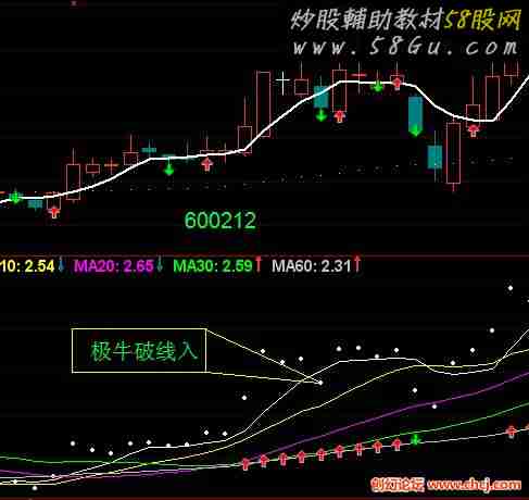 QR:CLOSE/INDEXC*1000,POINTDOT,LINETHICK4; MA5:MA(QR,5); MA10:MA(QR,10); MA20:MA(QR,20); MA30:MA(QR,30); MA60:MA(QR,60); DRAWICON(MA5>MA10&&MA10>MA20&&MA20>MA30&&MA30>MA60&&MA5>REF(MA5,1),MA60,1); DRAWICON(MA5>MA10&&MA10>MA20&&MA20>MA30&&MA30>MA60&&MA5<REF(MA5,1),MA60,2);
