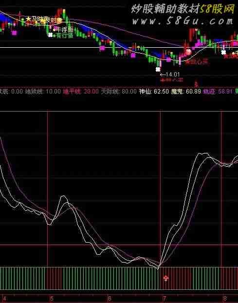 红的买入,老指标,应该是有人发过的,我感觉很好,可操作性强堪称一绝Y Q_1:=C-REF(C,1); Q_2:=100*EMA(EMA(Q_1,6),6)/EMA(EMA(ABS(Q_1),6),6); Q_3:=CROSS(EMA(C,19),EMA(C,7)); Q_4:=CROSS(EMA(C,7),EMA(C,19)); Z1:=L=LLV(L,BARSLAST(Q_3)+1); Z2:=LLV(L,BARSLAST(Q_3)+1); Z3:=H=HHV(H,BARSLAST(Q_4)+1); Z4:=HHV(H,BARSLAST(Q_4)+1); Q_A:=DRAWLINE(Z1,Z2,Z3,Z4,0); Y1:=H=HHV(H,BARSLAST(Q_4)+1); Y2:=HHV(H,BARSLAST(Q_4)+1); Y3:=L=LLV(L,BARSLAST(Q_3)+1); Y4:=LLV(L,BARSLAST(Q_3)+1); Q_B:=DRAWLINE(Y1,Y2,Y3,Y4,0); X1:=LLV(Q_2,2)=LLV(Q_2,7) ; X2:=COUNT(Q_2<0,2); X3:=CROSS(Q_2,MA(Q_2,2)); X4:=REF(Q_B,1)<REF(Q_B,2); X5:=Q_A>REF(Q_B,1); 买进:=(X1 AND X2 AND X3) AND X4 AND X5; TJ:=IF(Q_B<REF(Q_B,1) AND Q_B=Q_A,1,0); 堪称一绝:IF(REF(TJ,1)=0 AND TJ>=1,80,10),STICK,COLORRED; 持币:IF(Q_B<REF(Q_B,1) AND Q_B=Q_A,0,10),STICK,COLORGREEN;地狱底:0,COLORGRAY; 地狱线:10,COLORGRAY; 地平线:20,COLORLIMAGENTA; 天际线:80,COLORGRAY; RSV:=(((CLOSE - LLV(LOW,33)) / (HHV(HIGH,33) - LLV(LOW,33))) * 100); 神仙:SMA(RSV,7,1),COLORWHITE; 魔鬼:SMA(SMA(RSV,7,1),3,1),COLORYELLOW; 轨迹:SMA(SMA(SMA(RSV,6,1),5,1),3,1),COLORMAGENTA; 财神到:IF(CROSS(神仙,20),20,0),POINTDOT; DRAWICON((CROSS(神仙,20)),5,1); |