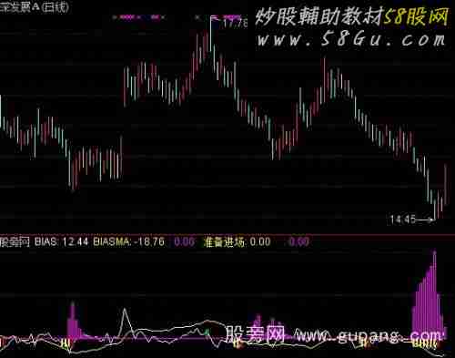 N:=5;M:=30; BIAS :(CLOSE-MA(CLOSE,N))/MA(CLOSE,N)*500; BIASMA:MA(BIAS,M)*5; 0; A27:=REF(LOW,1); A28:=((SMA(ABS((LOW - A27)),3,1)) / (SMA((MAX((LOW - A27),0)),3,1))) * 100; A29:=EMA((IF((CLOSE * 1.2),(A28 * 10),(A28 / 10))),3); A30:=LLV(LOW,38); A31:=HHV(A29,38); A32:=IF((LLV(LOW,90)),1,0); A33:=((EMA((IF((LOW <= A30),((A29 + (A31 * 2)) / 2),0)),3)) / 618) * A32; 庄家吸筹:(STICKLINE(A33,0,A33,0.8,1)),COLORMAGENTA; LC:=REF(CLOSE,1); RSI5:=((SMA(MAX((CLOSE - LC),0),5,1) / SMA(ABS((CLOSE - LC)),5,1)) * 100); TR1:=SUM(MAX(MAX((HIGH - LOW),ABS((HIGH - REF(CLOSE,1)))),ABS((LOW - REF(CLOSE,1)))),10); HD:=(HIGH - REF(HIGH,1)); LD:=(REF(LOW,1) - LOW); DMP:=SUM(IF(((HD > 0) AND (HD > LD)),HD,0),10); DMM:=SUM(IF(((LD > 0) AND (LD > HD)),LD,0),10); PDI:=((DMP * 100) / TR1); MDI:=((DMM * 100) / TR1); ADX:=MA(((ABS((MDI - PDI)) / (MDI + PDI)) * 100),5); AV:=(RSI5 + ADX); DXR:=(((ADX + REF(ADX,5)) / 2) + RSI5); WR10:=((100 * (HHV(HIGH,10) - CLOSE)) / (HHV(HIGH,10) - LLV(LOW,10))); NEWVOL:=(RSI5 - WR10); 阶段底部:=(AV + NEWVOL); 准备进场:IF((阶段底部 < 0),-10,0),STICK,COLORYELLOW,LINETHICK2; {STICKLINE((阶段底部 < 0),0,-10,0.8,1),LINETHICK2,COLORYELLOW;} 趋势线:=LLV(阶段底部,1),COLORWHITE,LINETHICK0; STICKLINE(CROSS(阶段底部,0),0,-10,0.5,1),COLORRED; STICKLINE((趋势线 >230 ),0,10,0.8,1),LINETHICK2,COLORGREEN; 0,COLORMAGENTA; |