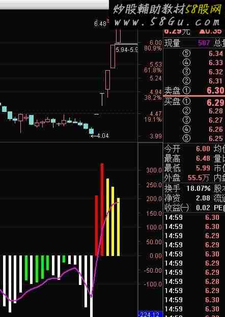 趋势线向上,做多 趋势线向下,减仓TYP:=(HIGH+LOW+CLOSE)/3; CCI:(TYP-MA(TYP,13))/(0.015*AVEDEV(TYP,13)),STICK; STICKLINE(CCI<0,0,CCI,1,0),COLORWHITE; STICKLINE(CCI>=0,0,CCI,1,0),COLORYELLOW; STICKLINE(CCI>REF(CCI,1) AND CCI<0 AND CCI>-100,0,CCI,1,0),COLORGREEN; STICKLINE(CCI>REF(CCI,1) AND CCI>100,0,CCI,1,0),COLORRED; 趋势线:EXPMA(CCI,5),COLORMAGENTA,LINETHICK2;