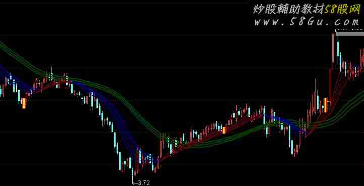 A:=(3*C+H+L+O)/6; XJ:=(A+0.618*REF(A,1)+0.382*REF(A,2)+0.236*REF(A,3)+0.146*REF(A,4))/2.382; YCZXH:=(MA(HHV(A,2),5)+MA(HHV(A,2),13)+MA(HHV(A,2),21)+MA(HHV(A,2),32))/4; YCZXL:=(MA(LLV(A,2),5)+MA(LLV(A,2),13)+MA(LLV(A,2),21)+MA(LLV(A,2),32))/4; SMH:EMA(YCZXH,21),COLOR004000,LINETHICK2; SML:EMA(YCZXL,21),COLOR004000,LINETHICK2; SMJ:(SML+SMH)/2,COLOR004000,LINETHICK2; PJ:=(10*A+9*REF(A,1)+8*REF(A,2)+7*REF(A,3)+6*REF(A,4)+5*REF(A,5)+4*REF(A,6)+3*REF(A,7)+2*REF(A,8)+REF(A,9))/55; A1:=EMA(PJ,3),COLOR004000;A2:=EMA(PJ,5),COLOR004000; A3:=EMA(PJ,7),COLOR004000;A4:=EMA(PJ,9),COLOR004000; A5:=EMA(PJ,11),COLOR004000; LX:=REF(XJ,1); ZD:=(SMA(MAX(XJ-LX,0),5,1)/SMA(ABS(XJ-LX),5,1))*100; KX1:=(CLOSE>=OPEN) AND ZD>=50; KX2:=(CLOSE<OPEN) AND ZD>=50; KX3:=(CLOSE>=OPEN) AND ZD<50; KX4:=(CLOSE<OPEN) AND ZD<50; IF(A5<REF(A5,1),A5,DRAWNULL),COLOR820000,LINETHICK2; IF(A5>REF(A5,1),A5,DRAWNULL),COLOR00005B,LINETHICK2; IF(A4<REF(A4,1),A4,DRAWNULL),COLOR8C0000,LINETHICK1; IF(A4>REF(A4,1),A4,DRAWNULL),COLOR000055,LINETHICK1; IF(A3<REF(A3,1),A3,DRAWNULL),COLOR9B0000,LINETHICK1; IF(A3>REF(A3,1),A3,DRAWNULL),COLOR00006C,LINETHICK1; IF(A2<REF(A2,1),A2,DRAWNULL),COLORBB0000,LINETHICK1; IF(A2>REF(A2,1),A2,DRAWNULL),COLOR00007D,LINETHICK1; IF(A1<REF(A1,1),A1,DRAWNULL),COLORCC0000,LINETHICK1; IF(A1>REF(A1,1),A1,DRAWNULL),COLOR00009B,LINETHICK1; AAA2:=SUM(IF( CLOSE>REF(CLOSE,1),VOL*C,0),0); AAA3:=SUM(IF( CLOSE<REF(CLOSE,1),VOL*C,0),0); AAA4:=SUM(IF( CLOSE=REF(CLOSE,1),VOL*C,0),0); BB1:=0; B1万元:=DVOL*DCLOSE/100; B1差:=B1万元-REF(B1万元,1); B2万元:=DVOL*DCLOSE/100; B2比:=B2万元/REF(B2万元,1); 净流入万元:=(AAA2-AAA3-0.5*AAA4); PM:=MA(净流入万元,1); PMA:=PM/REF(PM,1)>1; PMB:=REF(PMA,1)<1 AND PMA; 密码:=(EMA(MA(B1万元,2),2))/100000,COLORYELLOW,NODRAW; 二日比:=密码/REF(密码,1); 选股:=PMB AND 密码>REF(密码,1) AND 二日比>1 ,COLORRED,NODRAW; 均价线:=AMOUNT/V/100; 均价线2:=MA(均价线,3); 均价线5:=MA(均价线,5); 均价线10:=MA(均价线,10); 均价线30:=MA(均价线,30); 突破:=C>均价线2 AND 均价线2<REF(均价线2,1) AND REF(均价线2,1)<REF(均价线2,2) AND REF(均价线2,2)<REF(均价线2,3) AND 选股; STICKLINE(突破,H,L,5,0),LINETHICK1,COLORRED; STICKLINE(突破,H,L,0.2,0),COLORYELLOW; STICKLINE(突破,O,C,2,0),LINETHICK1,COLORYELLOW |