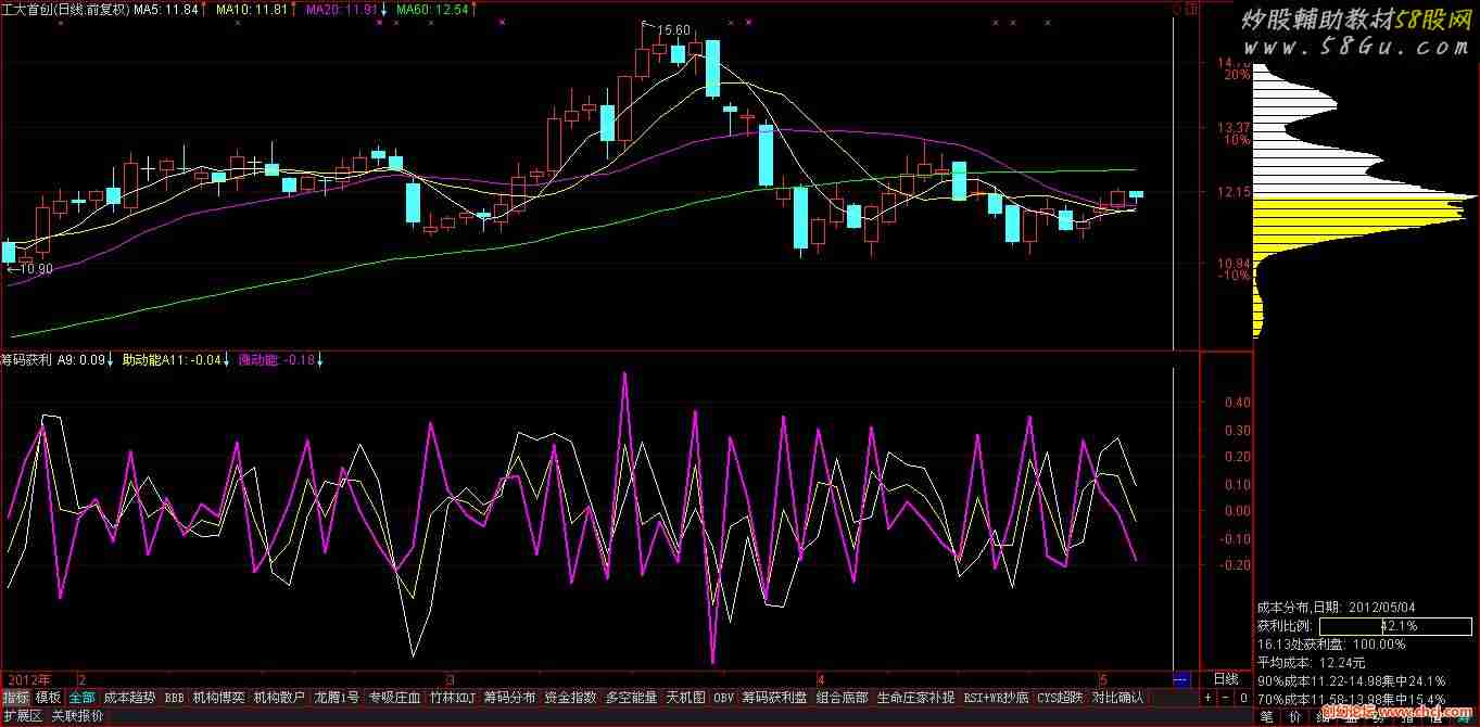 A1:=WINNER(C); A2:=WINNER(REF(C,1)); A3:=REF(WINNER(C),1); A4:=REF(WINNER(REF(C,1)),1); A5:=REF(WINNER(REF(C,1)),1)-REF(WINNER(COST(0.001)),1); A6:=WINNER(C)-WINNER(COST(0.001)); A7:=REF(WINNER(COST(99.999)),1)-REF(WINNER(REF(C,1)),1); A8:=WINNER(COST(99.999))-WINNER(C); A9:A6-A5; A10:=A8-A7; 助动能A11:A1-A3; A12:=A2-A4; A13:=A1-A2; A14:=A3-A4; 涨动能:A13-A14,LINETHICK2; |