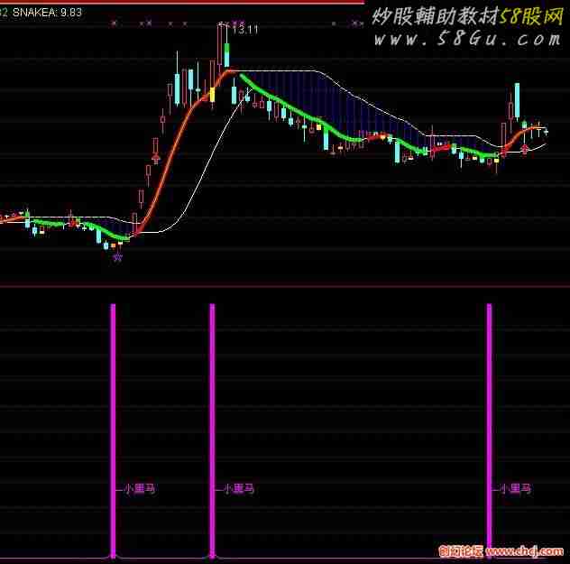 {小黑码} A:=V*100/CAPITAL; 小黑码:=MA(A,180); DIFF0:=(EMA(DCLOSE,12)-EMA(DCLOSE,26))*100; DEA0:=EMA(DIFF0,9); MACD0:=2*(DIFF0-DEA0); 黑码:(MACD0>REF(MACD0,1)*2.5 AND MACD0>15),COLORFF00FF; STICKLINE(黑码,00,50,1.2,0),COLORMAGENTA; DRAWTEXT(黑码,15,'←小黑码'),COLORMAGENTA;