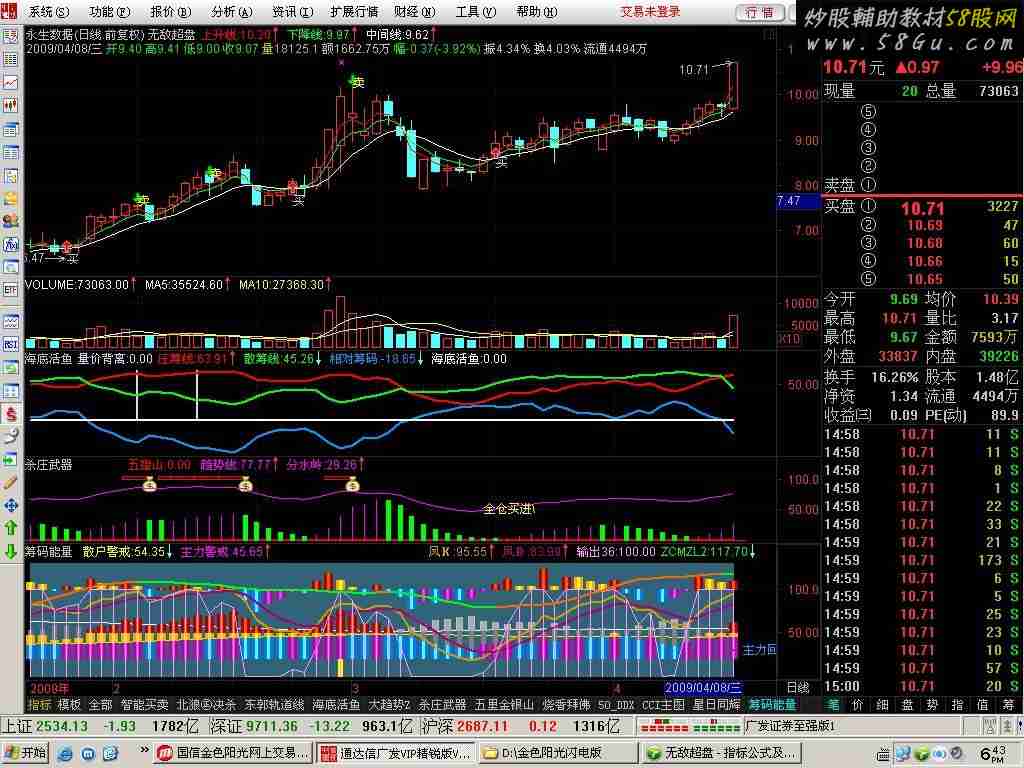 上升线:EMA(C,3),COLORRED,LINETHICK1; 下降线:EMA(C,5),COLOR00FF00,LINETHICK1; 中间线:EMA(下降线,5),COLORWHITE,LINETHICK1; VAR1:=(HIGH+LOW+OPEN+2*CLOSE)/5; VAR2:=REF(VAR1,1); VAR3:=SMA((CLOSE-VAR2),6,1)/SMA(ABS(CLOSE-VAR2),6,1)*100; VAR4:=(CLOSE-REF(OPEN,29))/REF(OPEN,29)*100; VAR5:=EMA(0.667*REF(VAR4,1)+0.333*VAR4,5); VAR6:=IF(VOL>=1.3*MA(VOL,5) AND COUNT(VAR4>=VAR5 AND VAR4<-17,3) AND REF(LOW,1)=LLV(LOW,120),1,0); VAR7:=SMA(MAX(CLOSE-REF(C,1),0),6,1)/SMA(ABS(CLOSE-REF(C,1)),6,1)*100; VAR8:=SMA(MAX(VAR1-VAR2,0),10,1)/SMA(ABS(VAR1-VAR2),10,1)*100; VAR9:=IF(COUNT(VAR8<20,5)>=1 AND COUNT(VAR1=LLV(VAR1,10),10)>=1 AND CLOSE>=OPEN*1.038 AND VOL>MA(VOL,5)*1.2,1,0); DRAWICON(FILTER(REF(VAR3,1)>81 AND VAR3<80 OR CROSS(82,VAR7),5),HIGH,2); DRAWTEXT(FILTER(REF(VAR3,1)>81 AND VAR3<80 OR CROSS(82,VAR7),5),HIGH,'卖'),COLORYELLOW; DRAWTEXT(FILTER(VAR9 OR VAR6,5),LOW*0.98,'买'),COLORRED; DRAWICON(FILTER(CROSS(上升线,下降线)AND 中间线>=REF(中间线,1)AND VAR3<50,5),上升线,1); DRAWTEXT(FILTER(CROSS(上升线,下降线)AND 中间线>=REF(中间线,1)AND VAR3<50,5), LOW*0.98, '买'),COLORLIGRAY; |