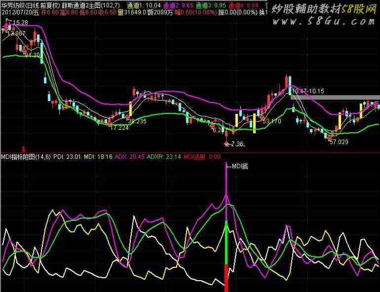{MDI指标选股}{参数: N 2 90 14, M 2 90 6}MTRA:=EXPMEMA(MAX(MAX(HIGH-LOW,ABS(HIGH-REF(CLOSE,1))),ABS(REF(CLOSE,1)-LOW)),N);HDA :=HIGH-REF(HIGH,1);LDA :=REF(LOW,1)-LOW;DMPA:=EXPMEMA(IF(HDA>0&&HDA>LDA,HDA,0),N);DMMA:=EXPMEMA(IF(LDA>0&&LDA>HDA,LDA,0),N);PDI:DMPA*100/MTRA,LINETHICK2;MDI:DMMA*100/MTRA,LINETHICK2;ADX:EXPMEMA(ABS(MDI-PDI)/(MDI+PDI)*100,M),LINETHICK2;ADXR:EXPMEMA(ADX,M),LINETHICK2;XG:=PDI<5&&ADX>60,LINETHICK2,COLOR0000FF;MDI选股:IF(XG,50,0),LINETHICK5,COLOR0000FF; |