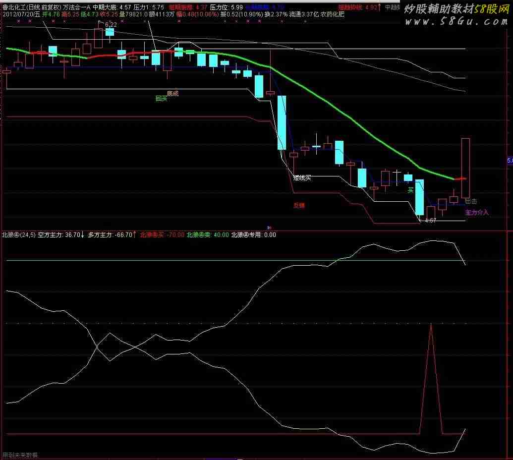 MA20:=MA(CLOSE,20);MA120:=MA(CLOSE,120);MA30:=MA(CLOSE,37);MAP:=MA(CLOSE,8);AA5:=MA(CLOSE,21);AA10:=MA(CLOSE,8),COLORFF0000;AA12:=MA(CLOSE,12),COLORFF0000;BB10:=((ATAN((AA10 - REF(AA10,1))) * 3.1416) * 10);BB12:=((ATAN((AA12 - REF(AA12,1))) * 3.1416) * 10);MA13:=MA(CLOSE,13);VAR01:=((((OPEN + LOW) + HIGH) + CLOSE) / 4);中期大底:LLV(LOW,30),COLORCDFFBB;短期底部0:=LLV(HIGH,30);短底:=EMA(VAR01,5);支撑:=HHV(短底,60);压力1:HHV(LOW,20),COLORFAABEC;压力:=SMA(LOW,5,1);中线:=MA(CLOSE,3);DRAWTEXT(FILTER(((((HIGH > 支撑) AND (CLOSE < 支撑)) AND ((CLOSE / OPEN) > (0 - 1.06))) AND (CLOSE < OPEN)),5),(HIGH + 0.02),'逃'),COLORFFFF00;中轨道:=(MA(HIGH,15) * 1.05);天:=(MA(LOW,15) * 0.985);人:=(MA(LOW,15) * 0.96);地:=(((HIGH + LOW) + CLOSE) / 3);B1:=HHV(地,(4 * 15));B6:=LLV(地,(4 * 15));B7:=(B1 - B6);B8:=(MA(((地 - B6) / B7),2) * 80);VAR1:=(((CLOSE - LLV(LOW,100)) / (HHV(HIGH,100) - LLV(LOW,100))) * 200);飞龙顶底线1:=SMA(VAR1,3,1);VAR2:=SMA(飞龙顶底线1,3,1);VAR3:=((3 * 飞龙顶底线1) - (2 * VAR2));VAR4:=LLV(LOW,5);VAR5:=HHV(HIGH,5);VAR6:=(EMA((((CLOSE - VAR4) / (VAR5 - VAR4)) * 100),4) * 2);VAR7:=EMA(((0.667 * REF(VAR6,1)) + (0.333 * VAR6)),2);VAR8:=((3 * VAR6) - (2 * VAR7));VAR9:=(POW(MA(CLOSE,5),2) + MA(CLOSE,5));VARA:=(POW(MA(LOW,5),2) + MA(LOW,5));VARB:=(POW(MA(HIGH,5),2) + MA(HIGH,5));VARC:=(((((VAR9 - LLV(VARA,64)) / (HHV(VARB,64) - LLV(VARA,64))) * 150) + 65) - 10);VARD:=((SMA(VARC,3,1) * 1.5) - 100);VARE:=SMA(VARD,3,1);VARF:=((3 * VARD) - (2 * VARE));VAR10:=(((HIGH + LOW) + (CLOSE * 2)) / 4);VAR11:=EMA(VAR10,13);VAR12:=STD(VAR10,13);VAR13:=(((VAR10 - VAR11) * 100) / VAR12);VAR14:=EMA(VAR13,5);VAR15:=EMA(VAR14,13);VAR16:=((EMA(VAR14,13) + 200) - 100);VAR17:=EMA(VAR16,10);VAR18:=((3 * VAR16) - (2 * VAR17));VAR19:=(((飞龙顶底线1 + VAR6) + VARD) + VAR16);VAR1A:=(((VAR2 + VAR7) + VARE) + VAR17);VAR1B:=(((VAR3 + VAR8) + VARF) + VAR18);VAR1C:=(((HIGH + LOW) + CLOSE) / 3);VAR1D:=((AMOUNT / VOL) / 100);VAR1E:=((SUM(AMOUNT,5) / SUM(VOL,5)) / 100);VAR1F:=((VAR1C - MA(VAR1C,34)) / (0.015 * AVEDEV(VAR1C,34)));VAR21:=((((HIGH + LOW) + CLOSE) + VAR1C) / 4);VAR22:=EMA(VAR21,24);VAR23:=STD(VAR21,24);VAR24:=(((VAR21 - VAR22) / VAR23) * 100);VAR25:=((VAR1C - MA(VAR1C,24)) / (0.015 * AVEDEV(VAR1C,24)));VAR26:=EMA(VAR24,5);VAR27:=((VAR1D - MA(VAR1D,21)) / (0.015 * AVEDEV(VAR1D,21)));VAR28:=((VAR1E - MA(VAR1E,90)) / (0.015 * AVEDEV(VAR1E,90)));VAR29:=(((((((VAR28 + VAR27) + VAR26) + VAR25) + VAR1F) / 5) + 165) / 4);VAR2A:=(((((VAR19 + VAR1A) + (VAR1B * 30)) / 32) / 5) - 15);VAR2B:=(((VAR29 + VAR2A) / 2) / 1.1);VAR2C:=VAR2B;短线:=MA(VAR2C,26);MID:=(短线 + (2 * STD(VAR2C,26)));UPPER:=(短线 - (2 * STD(VAR2C,26)));LOWER:=IF((VAR2C > 短线),短线,VAR2C);XY:=MA(CLOSE,5);M80:=MA(CLOSE,80);短期底部:(LLV(HIGH,30) * 0.93),COLOR0000FF;MA80:=LLV(HIGH,30);短期底部2:=SMA(CLOSE,2,1);趋势:=(MA(LOW,10) * 0.96);趋:=(EMA(OPEN,107) * 0.897);超跌位2:=MA(CLOSE,15);GF:=MA(CLOSE,10);MAN:=(SMA(HIGH,21,2) * 1.05);上1:=(HHV(短底,60) * 0.92);压力2:=(SMA(HIGH,21,2) * 1.035);阻挡线:=(SMA(LOW,21,2) * 0.96);下档线:=(((CLOSE - LLV(LOW,13)) / (HHV(HIGH,13) - LLV(LOW,13))) * 100);RSV:=SMA(下档线,3,1);K:=SMA(RSV,3,1);D:=((3 * RSV) - (2 * K));J:=(((CLOSE - MA(CLOSE,6)) / MA(CLOSE,6)) * 100);VAR2P:=(((CLOSE - MA(CLOSE,12)) / MA(CLOSE,12)) * 100);VAR3P:=(((CLOSE - MA(CLOSE,24)) / MA(CLOSE,24)) * 100);VAR4P:=(((J + (2 * VAR2P)) + (3 * VAR3P)) / 6);VAR5P:=MA(VAR4P,3);VAR6P:=(((CLOSE - LLV(LOW,34)) / (HHV(HIGH,34) - LLV(LOW,34))) * 100);RSV12:=SMA(VAR6P,3,1);K12:=SMA(RSV12,3,1);D12:=((3 * RSV12) - (2 * K12));J12:=(((CLOSE - LLV(LOW,55)) / (HHV(HIGH,55) - LLV(LOW,55))) * 100);RSV24:=SMA(J12,3,1);K24:=SMA(RSV24,3,1);D24:=((3 * RSV24) - (2 * K24));J24:=IF(CROSS(D,D24),LOW,REF(LOW,BARSLAST(CROSS(D,D24))));压力位:IF(CROSS(D24,D),HIGH,REF(HIGH,BARSLAST(CROSS(D24,D)))),COLORFFFFFF;支撑位:=IF((CLOSE >= MA(CLOSE,20)),80,50);U2L:=IF((CLOSE >= MA(CLOSE,20)),50,20);L2L:=IF(((D < 支撑位) AND (REF(D,1) >= 支撑位)),HHV(REF(HIGH,1),(BARSLAST(((D >= 支撑位) AND (REF(D,1) < 支撑位))) - 1)),REF(HHV(REF(HIGH,1),(BARSLAST(((D >= 支撑位) AND (REF(D,1) < 支撑位))) - 1)),BARSLAST(((D < 支撑位) AND REF(D,1)))));RH1:=IF((HIGH > L2L),LOW,REF(LOW,BARSLAST((HIGH > L2L))));RH4:=IF((HIGH > L2L),D,REF(D,BARSLAST((HIGH > L2L))));RH42:=IF((((HIGH > RH1) AND (D < RH4)) AND (D < D24)),HIGH,REF(HIGH,BARSLAST((((HIGH > RH1) AND (D < RH4)) AND (D < D24)))));RH5:=IF(((D > U2L) AND (REF(D,1) <= U2L)),LLV(REF(LOW,1),(BARSLAST(((D <= U2L) AND (REF(D,1) > U2L))) - 1)),REF(LLV(REF(LOW,1),(BARSLAST(((D <= U2L) AND (REF(D,1) > U2L))) - 1)),BARSLAST(((D > U2L) AND REF(D,1)))));RL1:=IF((LOW < RH5),HIGH,REF(HIGH,BARSLAST((LOW < RH5))));RL4:=IF((LOW < RH5),D,REF(D,BARSLAST((LOW < RH5))));RL42:=IF((((LOW < RL1) AND (D > RL4)) AND (D > D24)),LOW,REF(LOW,BARSLAST((((LOW < RL1) AND (D > RL4)) AND (D > D24)))));长期底部:LLV(HIGH,30),COLORFF0000;DRAWTEXT(FILTER(((((RL42 = J24) AND (CLOSE > OPEN)) AND (CLOSE > 长期底部)) AND (LOW <= J24)),20),(LOW - 0.12),'底成'),COLOR0EABFF;RL5:=(SMA(HIGH,5,2) * 1.05);上:=(SMA(LOW,5,2) * 0.96);下:=SMA(LOW,2,1);中:=(((((3 * CLOSE) + HIGH) + LOW) + OPEN) / 6);X1:=EMA(中,10);X2:=REF(X1,1);X3:=((REF(HIGH,1) + REF(LOW,1)) / 2);X4:=(MA(CLOSE,21) + (2 * STD(CLOSE,21)));X5:=REF(CLOSE,1);X6:=((SMA(MAX((CLOSE - X5),0),7,1) / SMA(ABS((CLOSE - X5)),7,1)) * 100);X7:=CROSS(79,X6);X8:=FILTER(X7,4);X9:=MA(CLOSE,115);VAR001:=EMA(CLOSE,8);飞龙顶底线:=EMA(VAR001,20);VAR002:=CROSS(VAR001,飞龙顶底线);VAR003:=(VAR001 < MA(CLOSE,20));VAR004:=(((HHV(HIGH,36) - CLOSE) / (HHV(HIGH,36) - LLV(LOW,36))) * 100);VAR005:=SMA(VAR004,5,1);VAR006:=SMA(VAR005,8,1);VAR007:=(CROSS(VAR005,VAR006) AND (VAR006 < 5));VAR008:=((CLOSE > (LLV(CLOSE,60) + (0.3 * LLV(CLOSE,60)))) AND VAR007);VAR009:=IF((CLOSE > 1000),VAR007,VAR008);VAR00F:=CROSS(X1,X2);MA115:=VAR00F;低买:=(VAR002 AND VAR003);黑码起步:=VAR009;DRAWTEXT(X8,(HIGH * 1.03),'出货'),COLOR9000F5;DRAWTEXT((黑码起步 > 0),(HIG