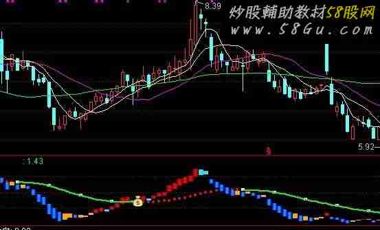 ★洗钱★:=(CLOSE - LLV(LOW,32)) / (HHV(HIGH,32) - LLV(LOW,32)) * 1.2 * CLOSE; ★洗钱★A:=SMA(★洗钱★,13,1); 【洗钱】目的:=SMA(★洗钱★A,5.5,1.5); K1:=BACKSET(【洗钱】目的>REF(【洗钱】目的,1),2); IF(K1,【洗钱】目的,DRAWNULL),POINTDOT,COLORRED,LINETHICK4; ★洗钱★B:=3 * ★洗钱★A - 2 * 【洗钱】目的; 银行亏空:=IF(空方 > ★洗钱★B,★洗钱★B,空方),LINETHICK0; {DRAWICON(CROSS(【洗钱】目的,★洗钱★B),【洗钱】目的,10);} 量:=(CLOSE - LLV(LOW,32)) / (HHV(HIGH,32) - LLV(LOW,32)) * 1.2 * CLOSE; 量1:=EMA(量,3); 量2:=EMA(量,5); 量3:=EMA(量,7); STICKLINE(量1 >= 量2,量3,量1,3,0),COLOR0000AA; STICKLINE(量1 >= 量2,量3,量1,2,0),COLOR0000CC; STICKLINE(量1 >= 量2,量3,量1,1,0),COLOR0000EE; STICKLINE(量1 <= 量2,量3,量1,3,0),COLORFF0000; STICKLINE(量1 <= 量2,量3,量1,2,0),COLORFF5500; STICKLINE(量1 <= 量2,量3,量1,1,0),COLORFF9900; T1:=量2 >= 量3 AND 量1 < REF(量1,1); T2:=量2 < 量3 AND 量1 > REF(量1,1); {STICKLINE(T1,量1,量3,8,0),COLORFFBB11;} STICKLINE(T1,量1,量3,3,0),COLORFFCC22; STICKLINE(T1,量1,量3,2,0),COLORFFDD33; {STICKLINE(T1,量1,量3,3,0),COLORFFEE44; STICKLINE(T1,量1,量3,1,0),COLORFFFF55; STICKLINE(T2,量1,量3,10,0),COLOR338FDD;} STICKLINE(T2,量1,量3,2,0),COLORFF00FF; {STICKLINE(T2,量1,量3,1,0),COLOR00DDFF;} STICKLINE(T2,量1,量3,3,0),COLOR00AAFF; {STICKLINE(T2,量1,量3,2.0,0),COLOR00CCFF; STICKLINE(T2,量1,量3,1,0),COLOR00EEFF;} 银行收益:=IF(【洗钱】目的 > ★洗钱★B,【洗钱】目的,★洗钱★B),LINETHICK0,COLORFF00FF; 洗钱手段:=★洗钱★B,LINETHICK1,COLOR00FFFF; IF(银行收益 <= REF(【洗钱】目的,1),银行收益, DRAWNULL),LINETHICK2,COLOR00FF00; DRAWICON(CROSS(★洗钱★B,【洗钱】目的),★洗钱★B * 0.99,9); |