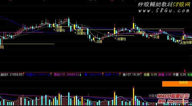 {VOL_量柱} {看图说明:黄色为倍量柱,白色为并肩平量柱,紫色为缩倍柱, 绿色为10天低量柱,蓝色为50天低量柱,灰色为百日低量柱, 高量柱容易看无标记,!为长阴短柱, 内有红实线为假阴柱。 红色箭头(的前三天)为黄金柱。次黄金柱难判,不标记}