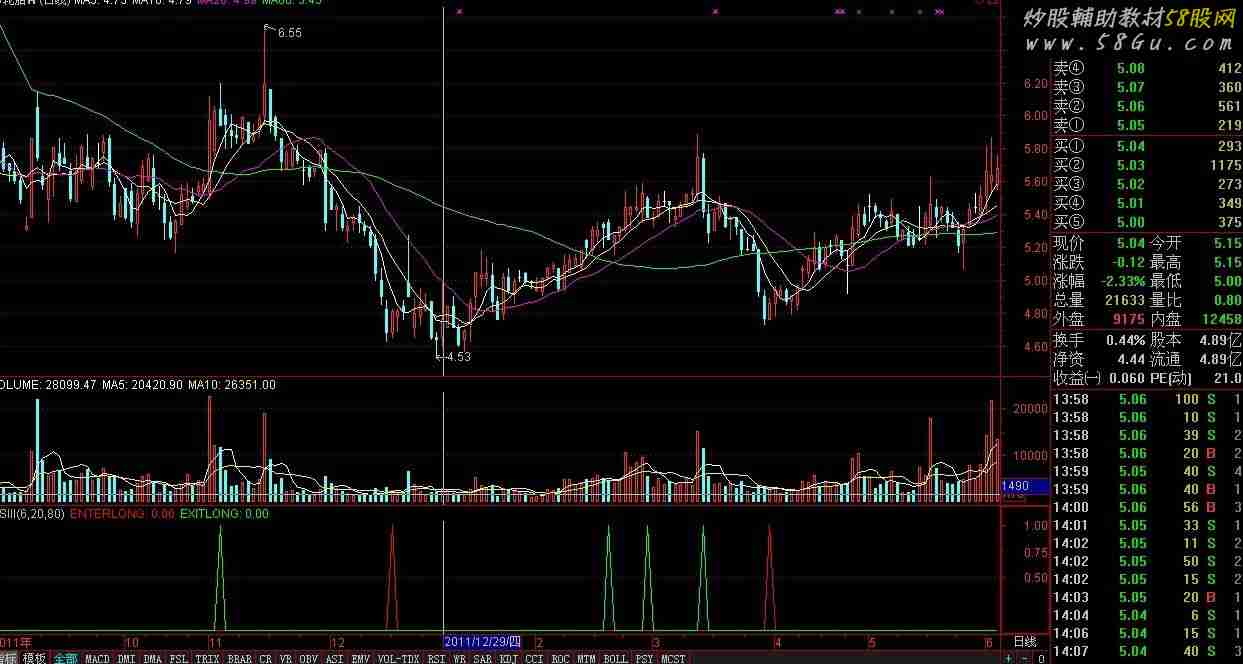 RSI交易系统的买卖 【源码、副图、预警、附图、说明】说明;交易系统的买入条件为RSI向上穿越20、卖出条件为RSI向下穿越80。参数名称:缺省值,最小值,最大值参数名称:缺省值,最小值,最大值N1:6,2,10OLL1:20,2,100LH1:80,2,100WQ:="RSI.RSI1"(N1,2,2);ENTERLONG:CROSS(WQ,LL1),COLORRED;EXITLONG:CROSS(LH1,WQ),COLORGREEN;