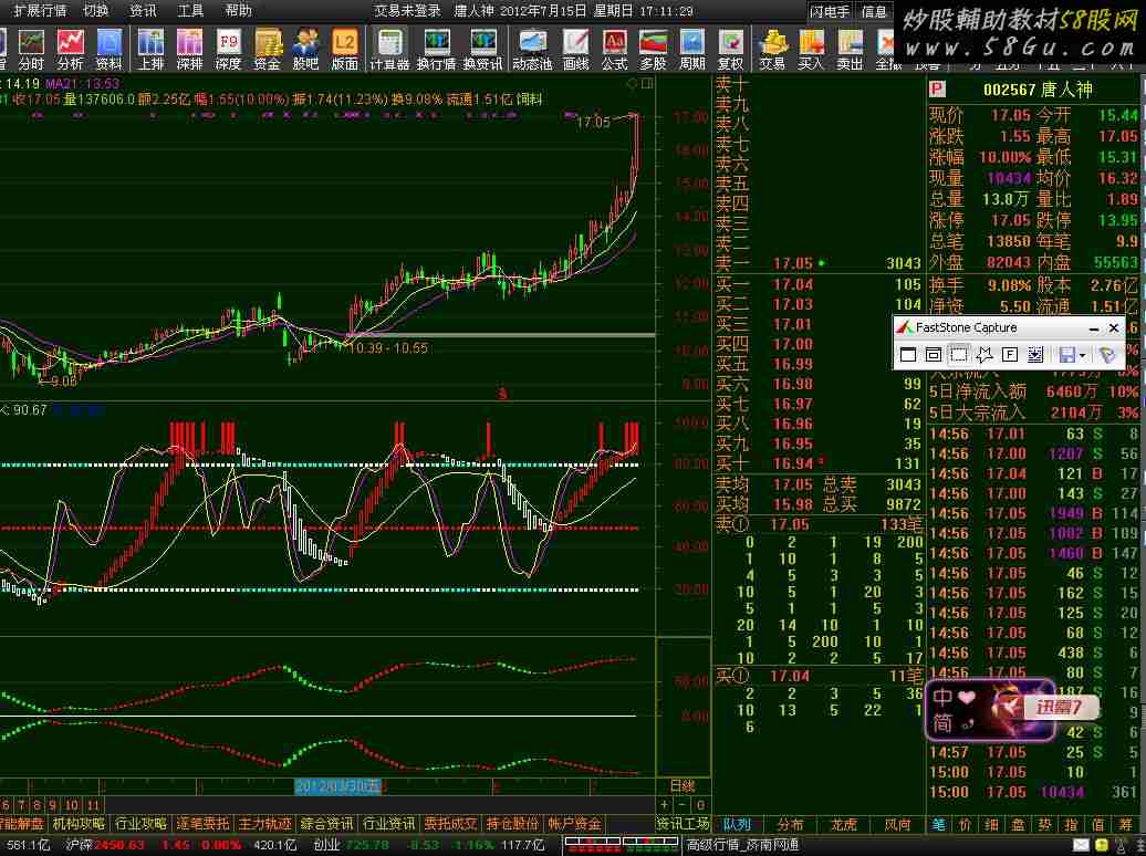 VAR0:=(CLOSE-LLV(LOW,60))/(HHV(HIGH,60)-LLV(LOW,60))*100;VAR3:=SMA(VAR0,3,1);VAR1:=SMA(VAR3,4,1)-10;VAR4:=(HHV(HIGH,60)-CLOSE)/(HHV(HIGH,60)-LLV(LOW,60))*100;VAR5:=SMA(VAR4,3,1);VAR2:=SMA(VAR5,4,1)-90;STICKLINE(REF(VAR1,1)<VAR1,VAR1,REF(VAR1,1),0.1,0),COLORRED;STICKLINE(REF(VAR1,1)>VAR1,VAR1,REF(VAR1,1),0.1,0),COLORGREEN;STICKLINE(REF(VAR2,1)>VAR2,VAR2,REF(VAR2,1),0.1,0),COLORRED;STICKLINE(REF(VAR2,1)<VAR2,VAR2,REF(VAR2,1),0.1,0),COLORGREEN;中轴:0,COLORWHITE; |